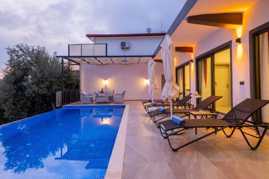 Villa Asya Bella, Kalkan Kördere bölgesinde yer alan eşsiz güzellikteki deniz ve doğa manzarasına ev sahipliği yapan villamız 2 yatak odalı ve 4 kişilik konaklama kapasitesine sahiptir. Kalkan'ın en özel manzarasını keyifle seyredebileceğiniz villamız tüm bölgeyi gün boyu kuş bakışı seyredebilmenize imkan tanır. Villa Asya Bella konukları için özenle tasarlanmış ve dekore edilmiştir. Villamızın içerisinde jakuzi bulunmaktadır. Bunun yanı sıra sizlere lüks ve konforlu bir tatil deneyimi sunan Villa Asya Bella'nın, şezlong, oturma köşesi, yemek masası ve barbekü alanı yer almaktadır.