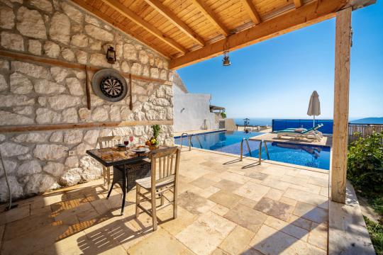 Villa Anahita;Kalkan Kördere mevkiide bulunan 1 yatak odalı 2 kişi konaklama kapasiteli balayı tatil villasıdır. Villamız modern ve şık taş mimarisi ile tasarlanmıştır. Villamızda 1 adet suti yatak odası ve günün bütün yorgunluğunu atabileceğiniz jakuzi bulunmaktadır. Villamızda keyifli vakit geçirebileceğiniz sauna ve türk hamamı bulunmaktadır. Vİllamızın havuz alanında yemek masası oturma grubu ve barbekü bulunmaktadır. Villamızın havuz alanı perdeleme sistemi ile korunaklı hale getirilmiştir.