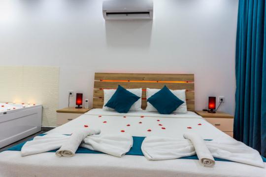 Kalkan Sarıbelen mevkide bulunan Villa Asilim, tek yatak odalı balayı villasıdır.Villamız jakuzili ve muhafazakar ailelerimize hitap etmektedir.Tek çocuklu ailelerimiz içinde konaklama imkanı sunmaktadır.Doğa manzaralı villamızın kendine ait korunaklı dışardan gözükmeyen havuzu ve bahçesi mevcuttur.Gönül rahatlı ile bahçe ve havuzun tadını çıkartabilirsiniz.