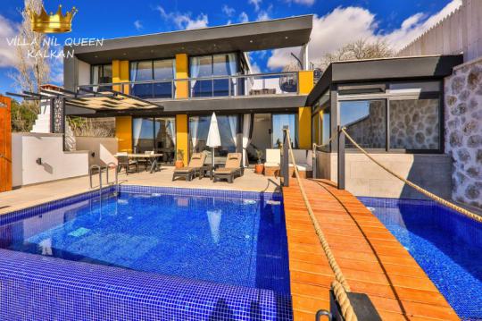 Villa Nil Queen; Kalkan Üzümlü mevkiide konumlanan villamız 1 yatak odalı 2 kişi konaklama kapasitesine göre dizayn edilmiştir. Suit yatak odasında bulunan jakuzi ve sauna, buhar odası ve ısıtmalı kapalı havuzu ile misafirlerimize keyifli bir tatil fırsatı sunmaktadır. Korunaklı olarak havuz alanı muhafazakar aileler ve balayı çiftleri için ideal bir seçenektir.