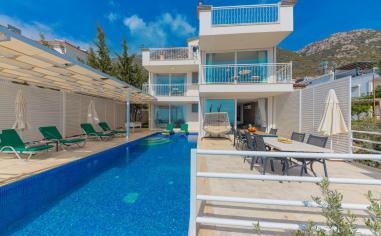 Kalkan Kızıltaş Bölgesinde 4 Yatak Odalı 8 Kişilik Deniz Manzaralı, Merkeze Yakın Özel Hüzme Havuzlu Tatil Villası.
