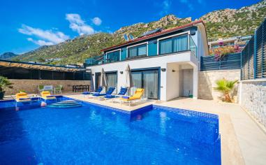KALKAN ORDU MEVKİİDE 3 YATAK ODALI 6 KİŞİLİK DENİZ MANZARALI SICAK HAVUZLU TATİL VİLLASI