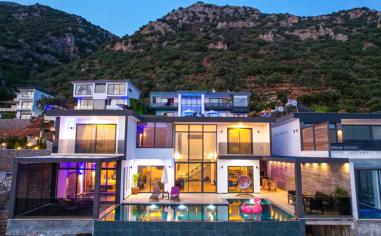 Kalkan Kördere Bölgesinde 3 Yatak Odalı 6 Kişilik Deniz Manzaralı Hamam Saunalı Tatil Villası