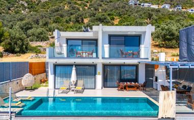 Kaş Gökseki Bölgesinde 2 Yatak Odalı 4 Kişilik Panoramik Deniz Manzaralı, Hamam Sauna Ve Jakuzili Tatil Villası.