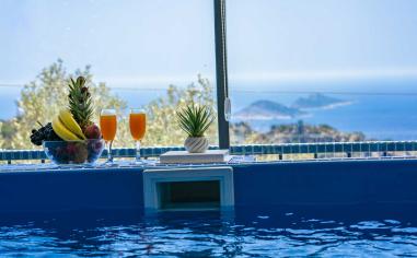 Kaş Gökseki Bölgesinde 2 Yatak Odalı 4 Kişilik Panoramik Deniz Manzaralı, Hamam Sauna Ve Jakuzili Tatil Villası.