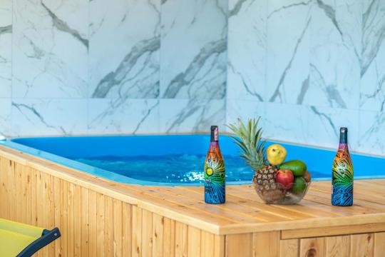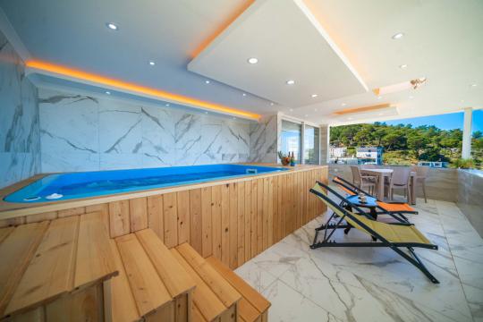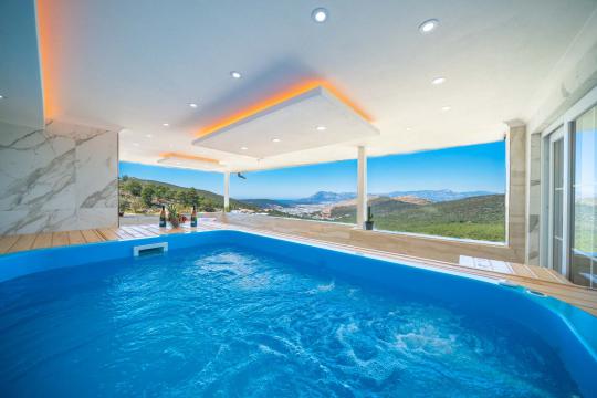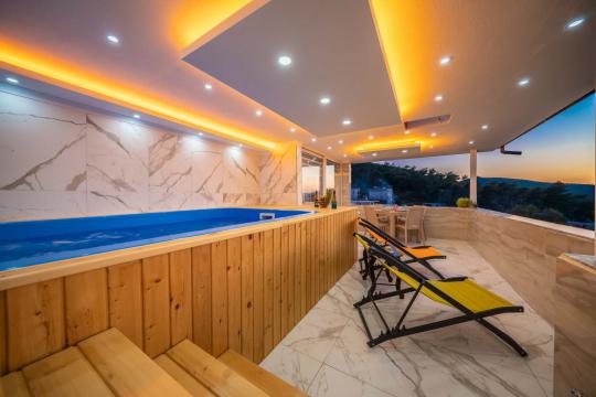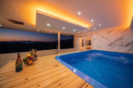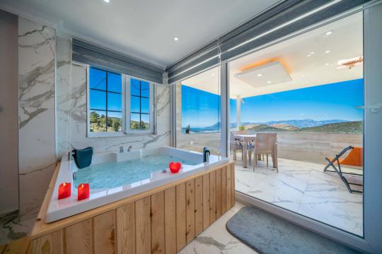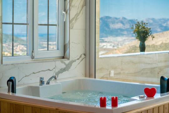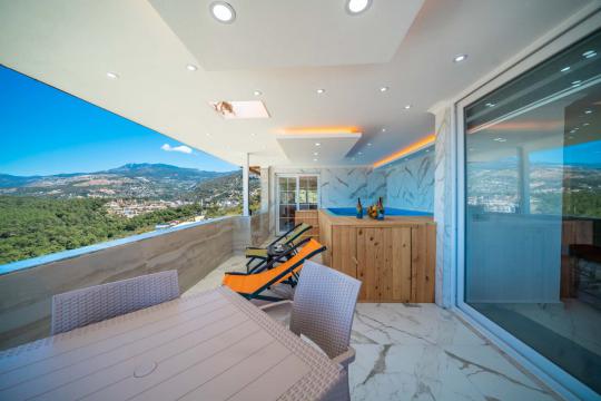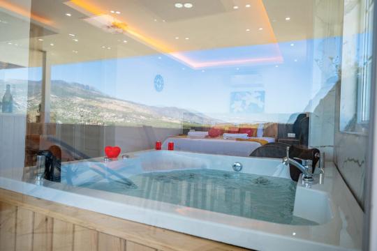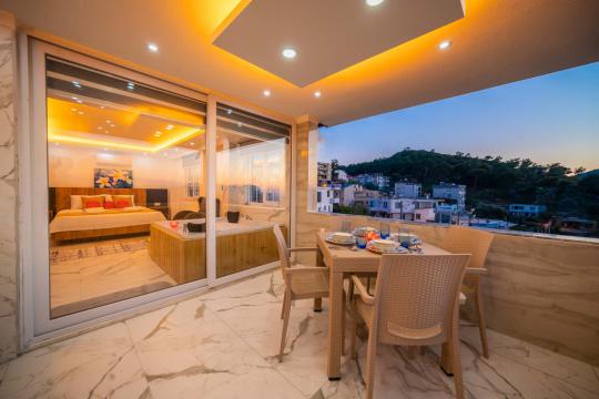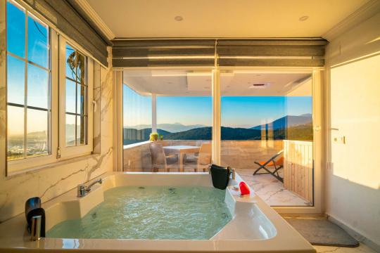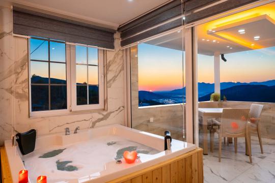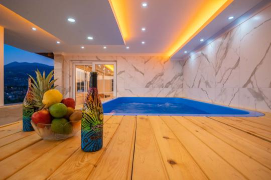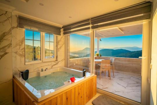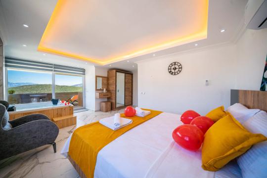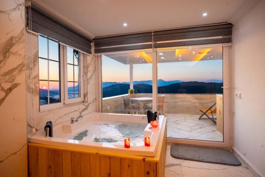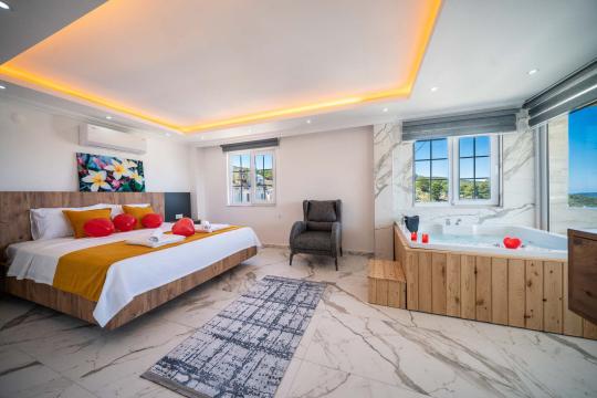 Suit Diana, Antalya Kaş Kalkan Akbel mevkiinde yer alan 4 kişi kapasiteli doğa manzaralı özel jakuzili havuzu ile şık bir suittir. Amerikan mutfağa sahip olan suitimiz de 2 yatak odası ve 4 kişilik konaklama kapasitesi mevcut olup toplam 3 banyosu bulunmaktadır. Suitimizin ebeveyn yatak odasında jakuzide yer almaktadır.