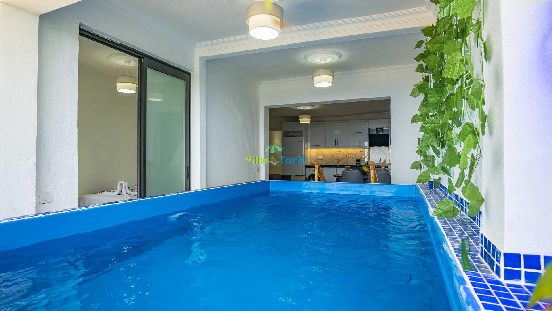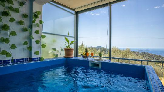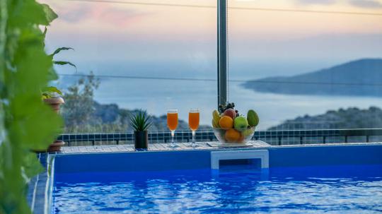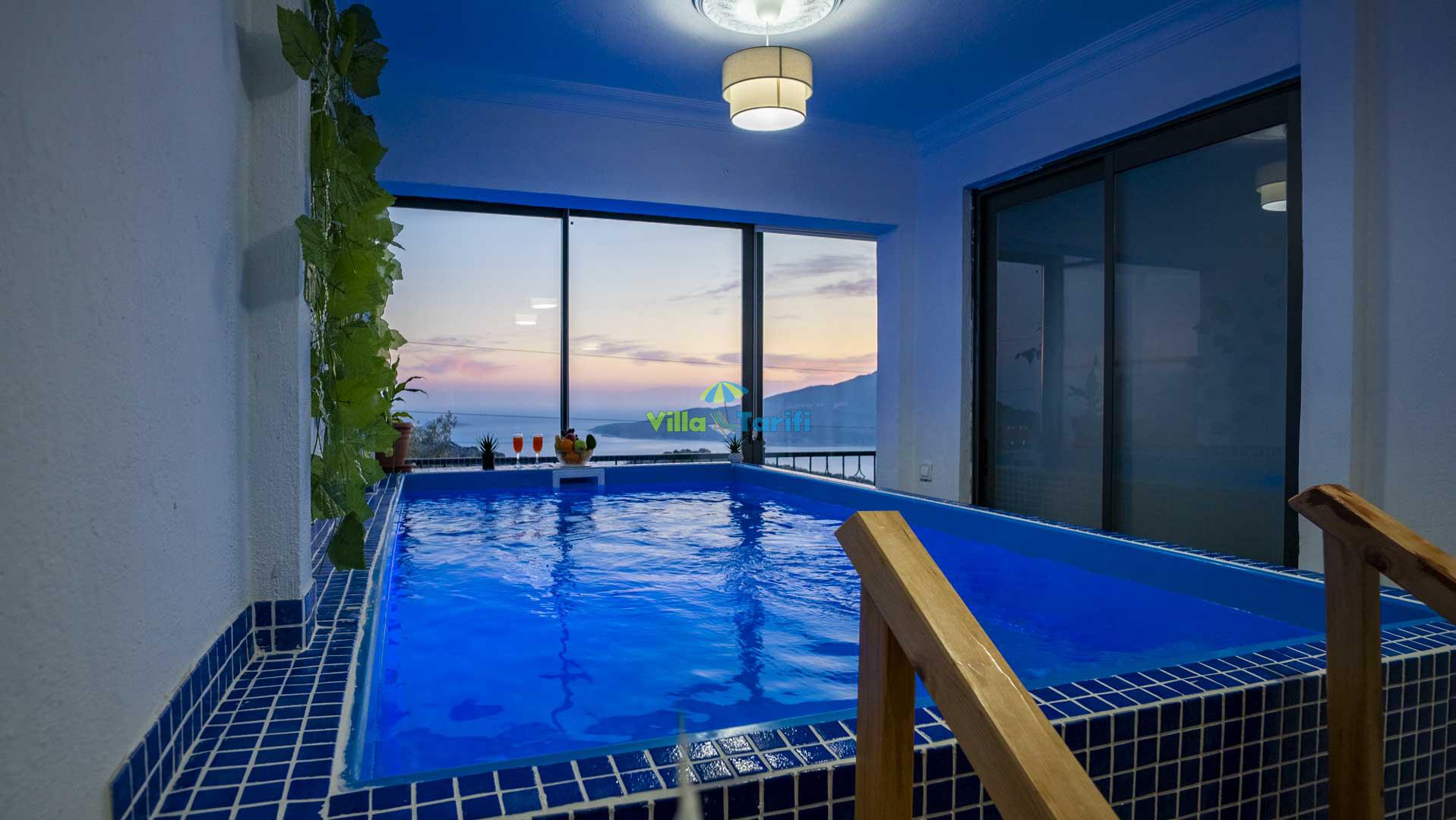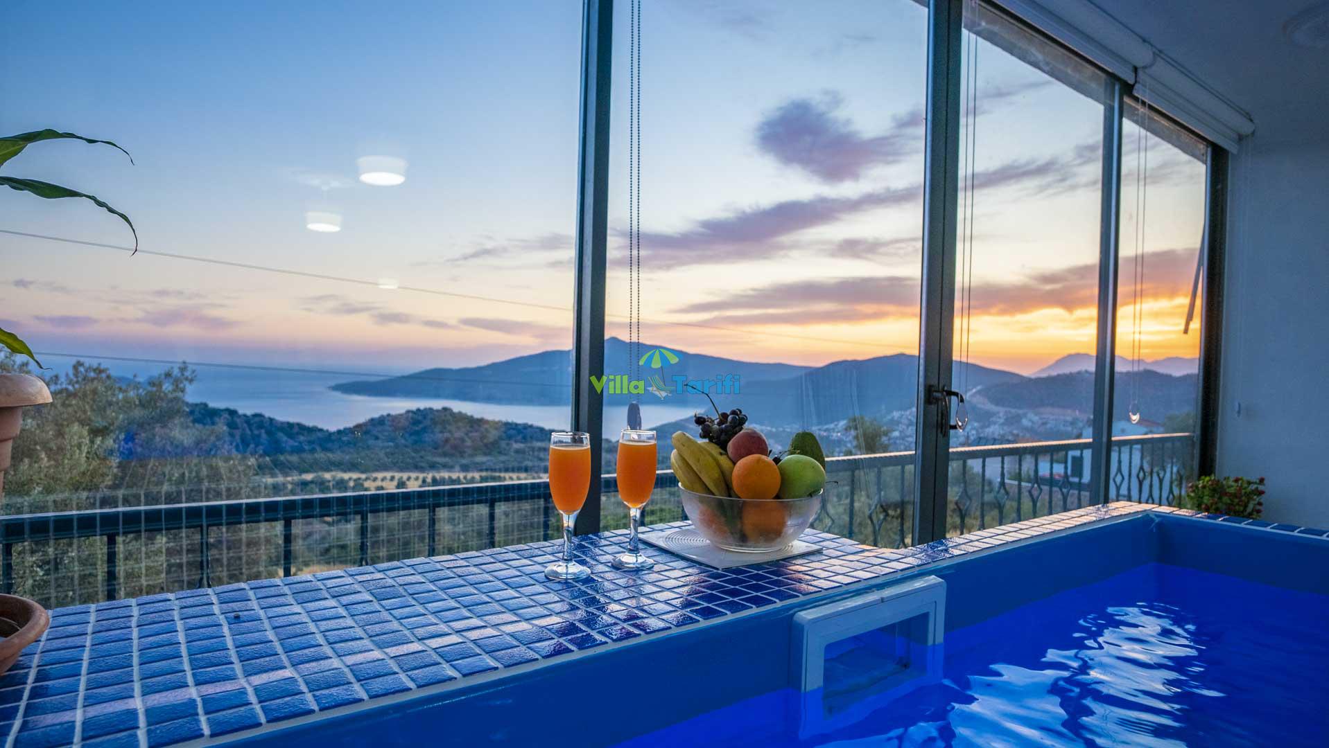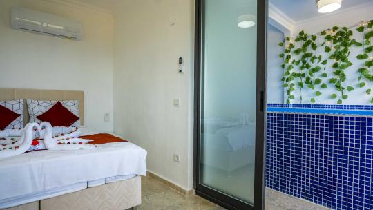 Suit Lavanta; Kalkan Kördere mevkiide konumlanan villamız 2 yatak odalı 4 kişi konaklama kapasitesine sahiptir. Suit olarak tasarlanan villamızın havyz alanı kapalı olup terası açılabilir cam ile korunaklı olarak tasarlanmıştır.
