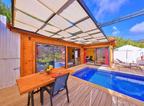 Villa Abanoz; Kalkan İslamlar Bölgesinde 1 yatak odalı 2 kişi konaklama kapasiteli doğa manzaralı tatil villası. Villamız doğa ile huzur bulduğunuz islamlar bölgesinde konumlanmış olup oldukça şık ve sade bir tasarıma sahiptir. Villamızın yatak odasında tatilinizi unutulmaz kılacak jakuzi bulunmaktadır. Villamızın korunaklı havuz alanında bahçe salıncak, şezlong, yemek masası ve barbekü/mangal bulunmaktadır. Villa Abanoz çekirdek aileler ve balayı çiftleri için oldukça ideal bir seçenektir.