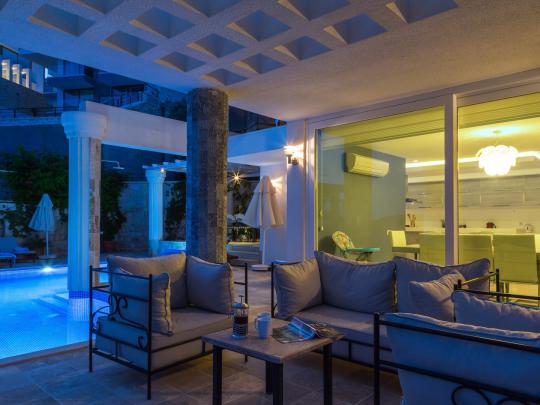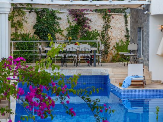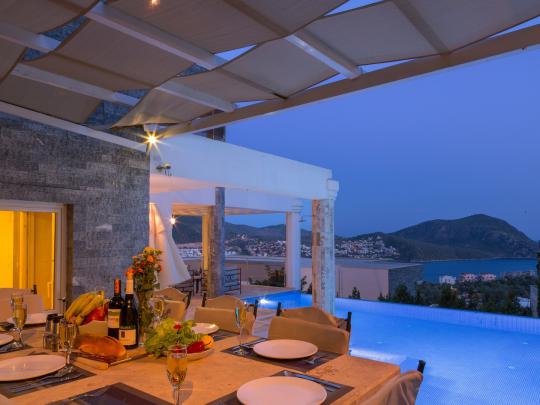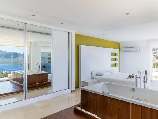 Kalkan Kalamar mevkiinde bulunan "Villa Ada 1"; 4 yatak odalı 8 kişi konaklama kapasiteli lüks kiralık villadır. Odalarının her biri süit özellikte olan villamız oldukça modern ve konforlu bir yapıya sahiptir. İçerisinde fitness salonu bulunan villamızda tatilinizi hayallerinizdeki gibi yaşananız adına tüm detaylar düşünülmüştür. Kalabalık aileler ve arkadaş grupları için oldukça uygun olan villamızın muhteşem bir deniz manzarası bulunmaktadır. Bahçe katında bulunan geniş yüzme havuzu, muhteşem manzarası ve eşsiz konumu ile jakuzili kiralık villamız "Villa Ada 1" bu seneki tatil planlarınızı gerçekleştirmek için sizleri bekliyor!