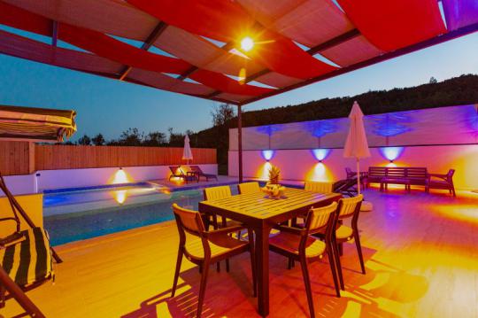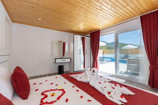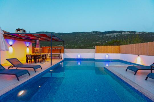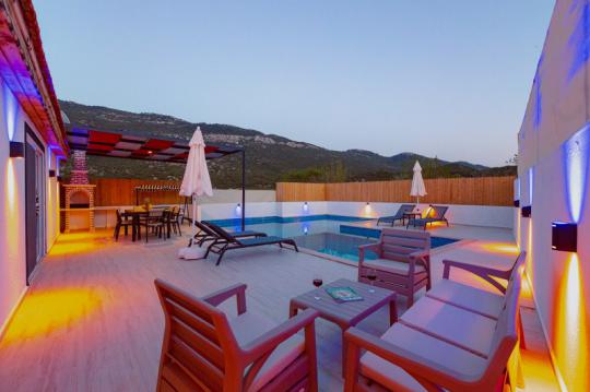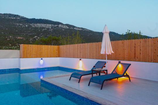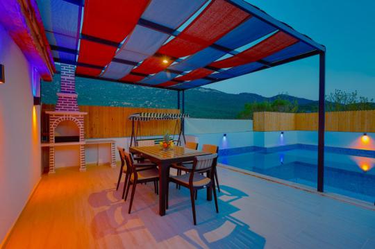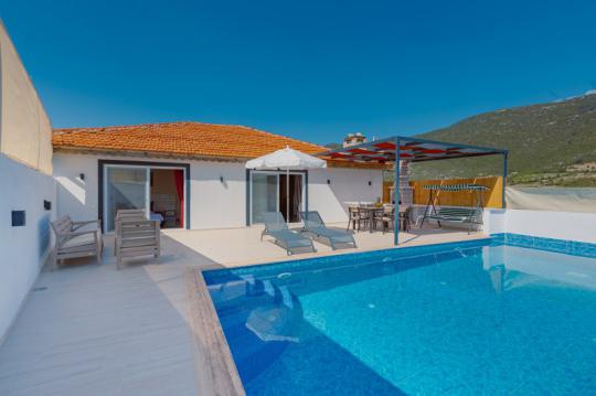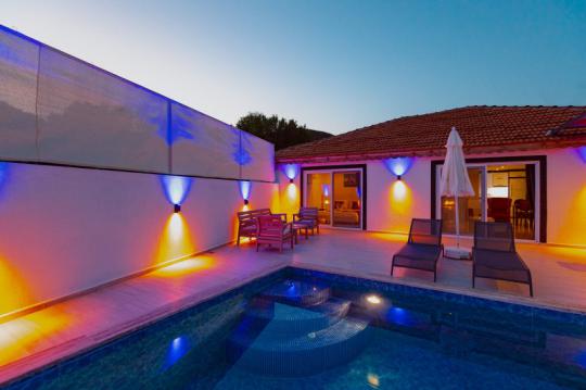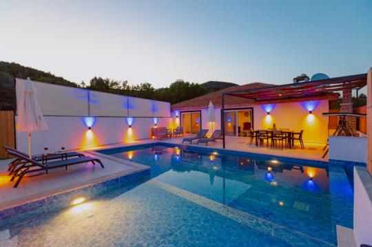 Villa Adalya İkizce, Kalkan'ın İkizce bölgesinde yer alan villamız 2 yatak odalı 4 kişi konaklama kapasitelidir. Villamız muhteşem bir doğa manzarasına sahip olmakla birlikte özenli lüks dekoru, modern mutfağı, eksiksiz araç-gereçleri ve konforlu eşyaları sayesinde kendinizi evinizde gibi hissedebilecek ve rahat bir tatil geçirme imkanı bulabileceksiniz. Villamızın özel yüzme havuzunun korunaklı bir şekilde tasarlanması özellikle muhafazakâr aileler ve balayı çiftleri için ideal bir seçenektir.