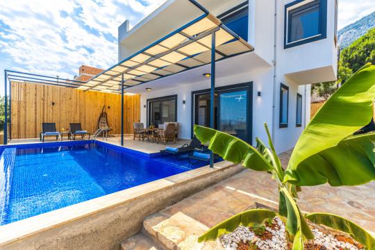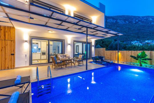 Villa Albedo, Kaş Gökseki mevkiinde konumlanmakta olan panoramik deniz ve yeşilliklerle kaplı doğa manzarasına hakim kiralık villalarımız arasında yer almaktadır. Modern ve şık bir şekilde dekore edilen yazlık villamızda 2 adet yatak odası bulunmakta olup 4 kişiye konaklama imkanı sağlamaktadır. Yatak odalarından bir tanesinin içerisinde tüm yılın vermiş olduğu yorgunluğu giderebileceğiniz jakuzi yer almaktadır. Çekirdek aileler ve balayı çiftleri rahatlıkla tercih edebilirler. Aynı zamanda dış özel yüzme havuzuna entegresığ çocuk havuz bulunmaktadır. Sessizlik ve sakinlik içerisinde huzur dolu bir yazlık villada tatil için VillaAlbedo' yu tercih edeblilirsiniz.