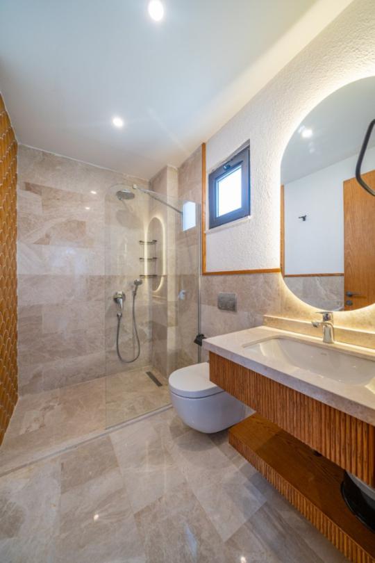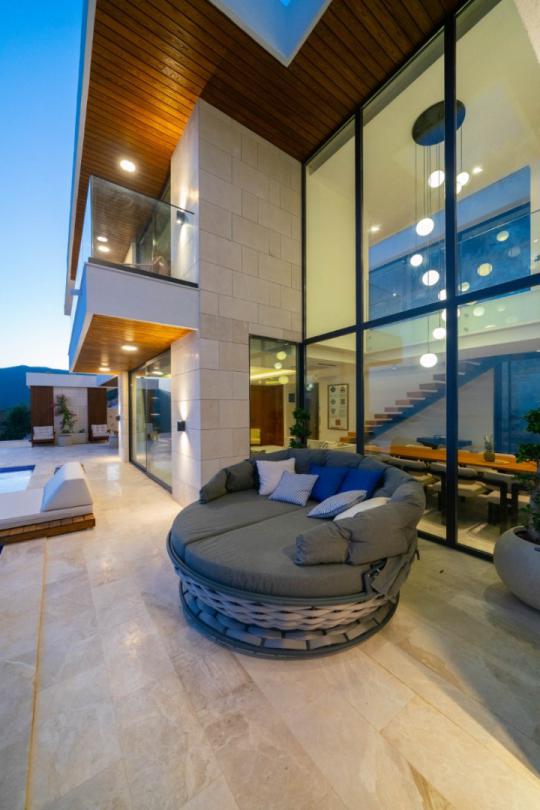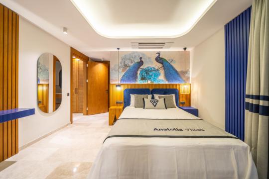 Villamız, modern mimariyle inşa edilmiş olup, Anadolu Türk motifleriyle bezeli zarif bir tasarıma sahiptir. Eskiyle yeniyi harmanlayan bu benzersiz stil, hem nostaljik bir atmosfer sunar hem de modern konforun tadını çıkarmanıza olanak tanır.