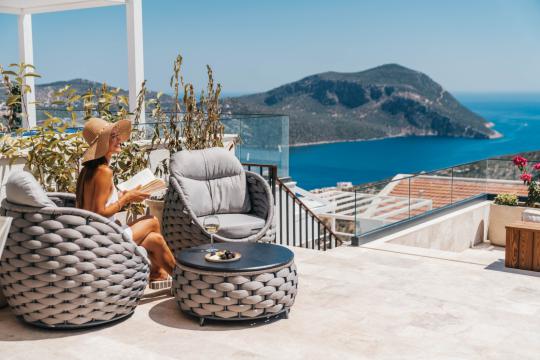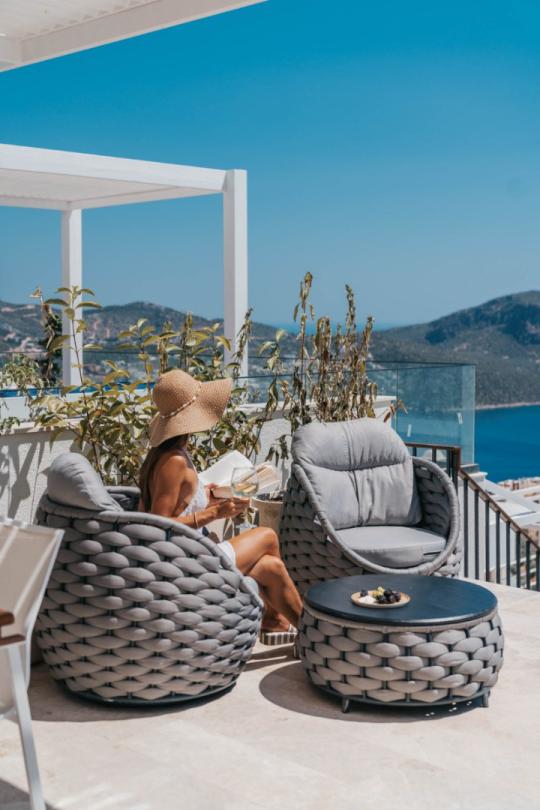 Villa Anatolia, Kalkan/Kalamar mevkiinin en yüksek noktasında konumlanmış, göz kamaştırıcı Akdeniz, Kalkan ve Kalamar koylarının nefes kesen manzarasına hakim bir konumda bulunmaktadır. Bu eşsiz konum, her sabah güne muhteşem bir güneşin doğuşuyla başlamak ve akşamüstü muhteşem renklerle batan güneşin keyfini çıkarmak için sizi adeta büyüleyecektir.
