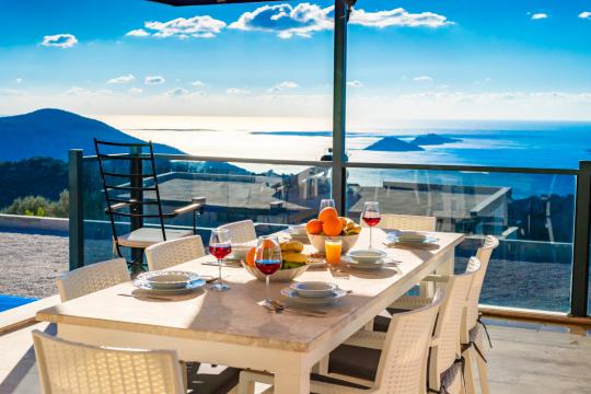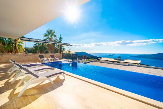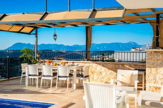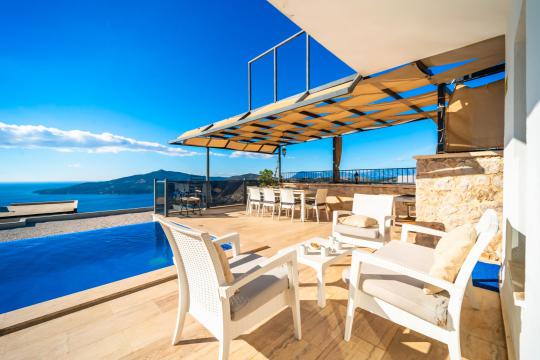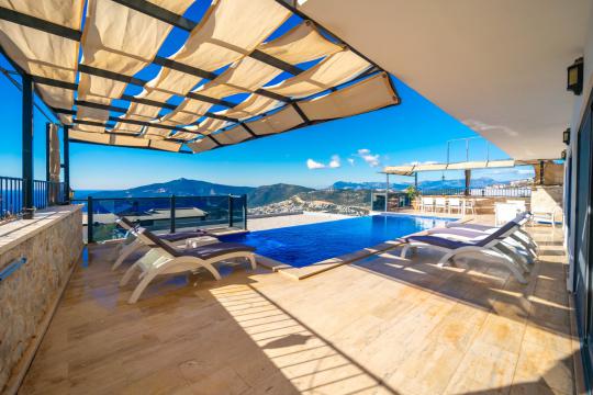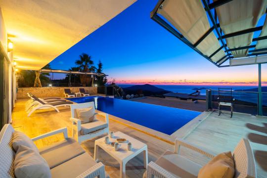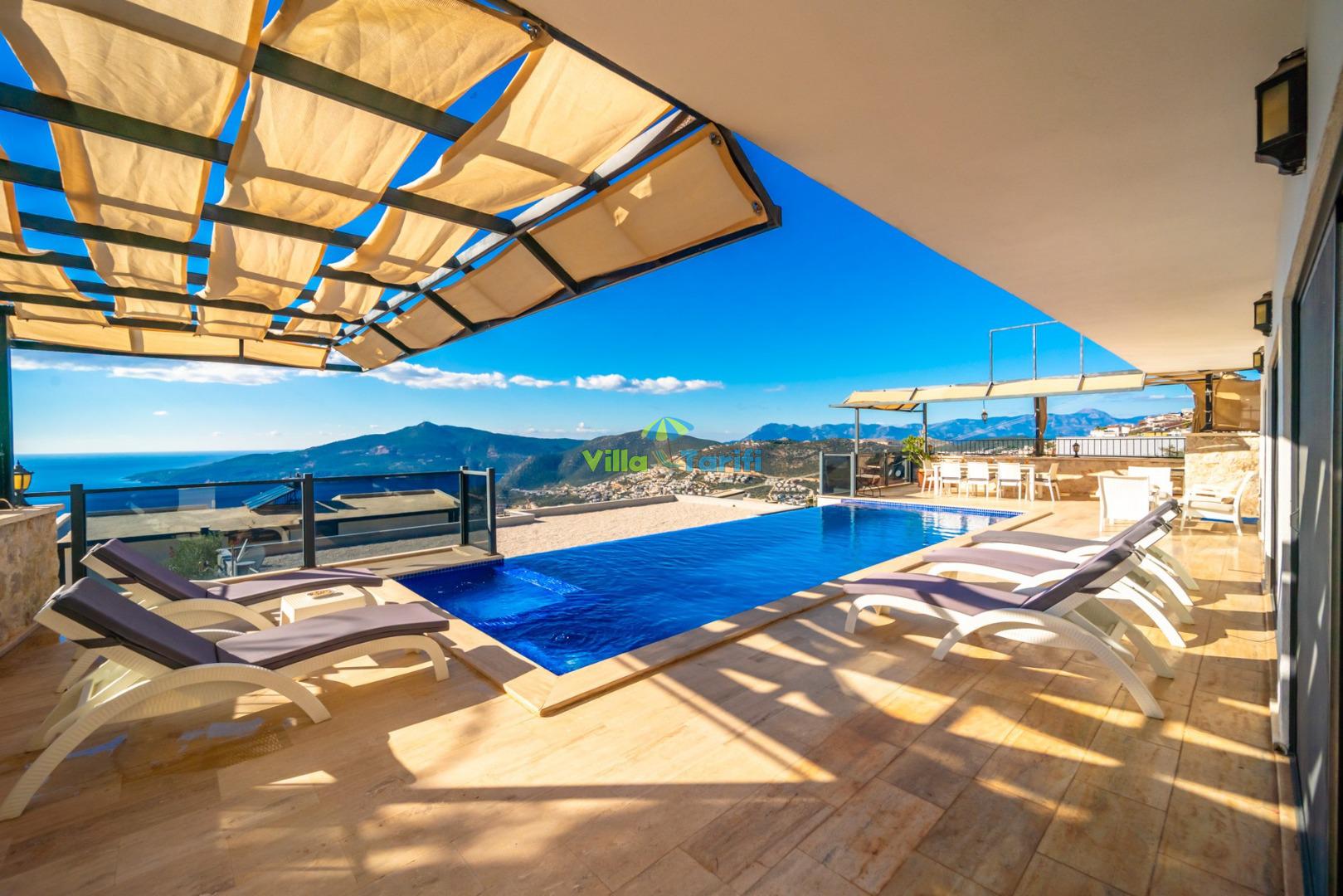 Villa April; Kalkan Kördere bölgesinde 4 yatak odalı 8 kişi konaklama kapasitesine sahiptir. Villamız panoramik deniz ve kalkan manzarasına sahip olup doğa manzarasınada hakimdir. Amerikan mutfak ve salonunda misafirlerimizin tüm ihtiyaçlarını karşılayacağı şekilde bütün araç gereçler düşünülmüştür. Villamızın tüm yatak odalarında deniz manzarası mevcut olup villamızın bir yatak odasında günün tüm yorgunluğunu atabileceğiniz jakuzi bulunmaktadır. Villamızın korunaklı havuz alanında keyifli vakit geçirebileceğiniz taşınabilir barbekü, oturma grubu, yemek masası ve şezlong bulunmaktadır. Villa April kalabalık aileler ve arkadaş grupları için oldukça ideal bir seçenektir.
