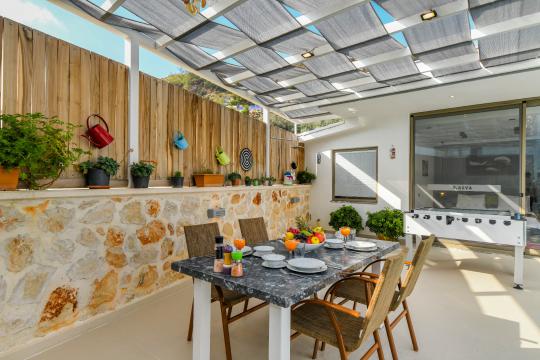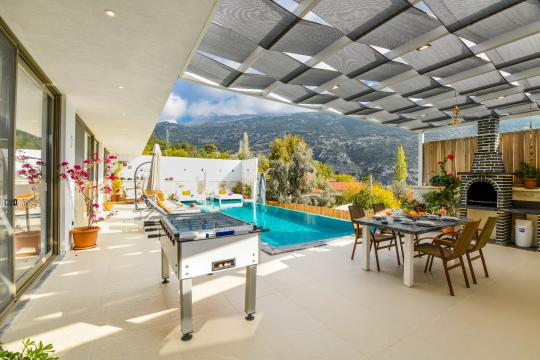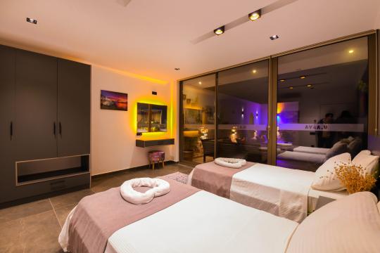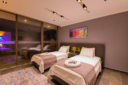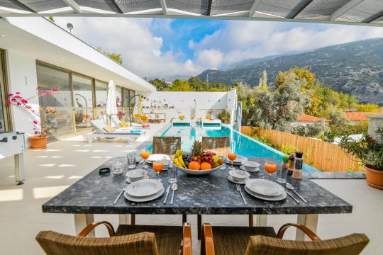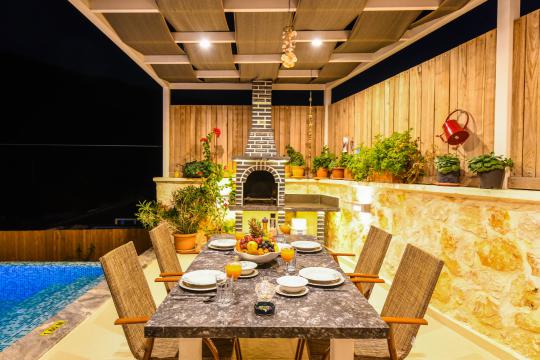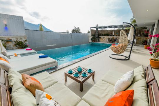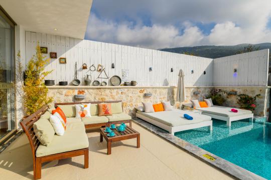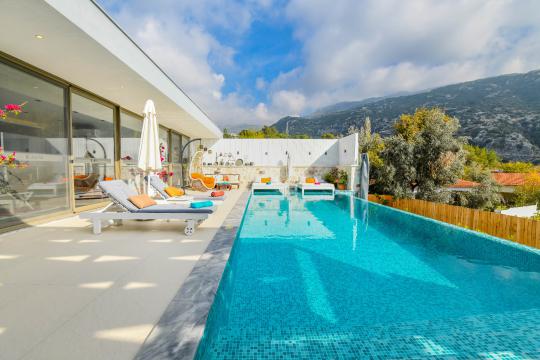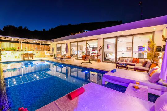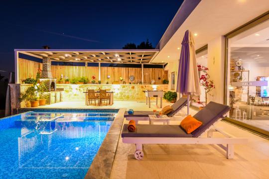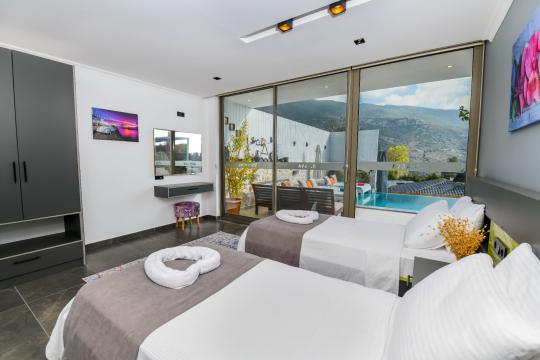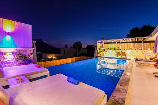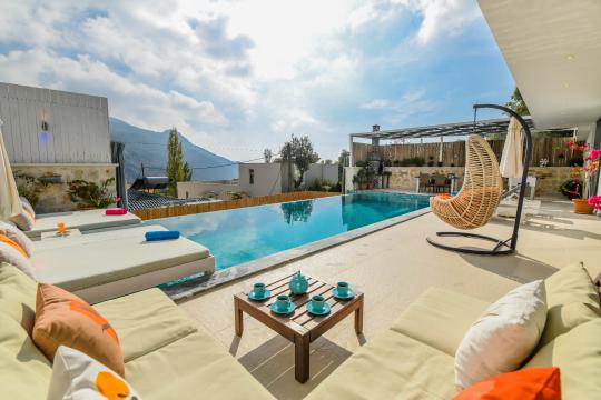 Kalkan İslamlar mevkisinde konumlanmıştır. 2 yatak odalı 4 kişilik kapasiteye sahiptir. Balayı suit odası da çift kişilik jakuzi bulunmaktadır. Hem çocuklu aileler için hemde balayı çiftleri için oldukça ideal bir villamızdır. Doğa içerisinde tamamen muhafazakar olup özel yüzme havuzu ve havuz terası dışarıdan gözükmemektedir.
