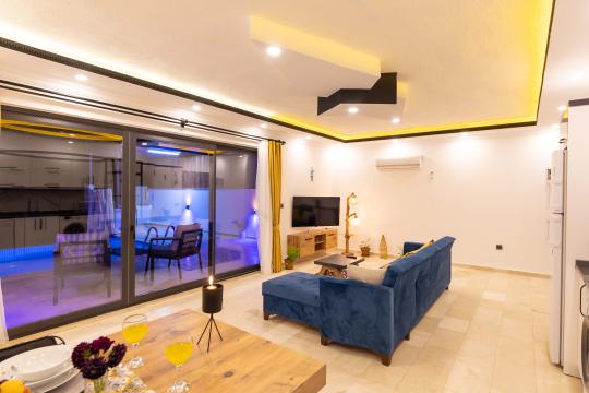 Villa Ayaz 1; Kalkan İslamlar mevkiinde konumlanan villamız 1 yatak odalı 2 kişi konaklama kapasitesine göre dizayn edilmiştir.