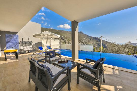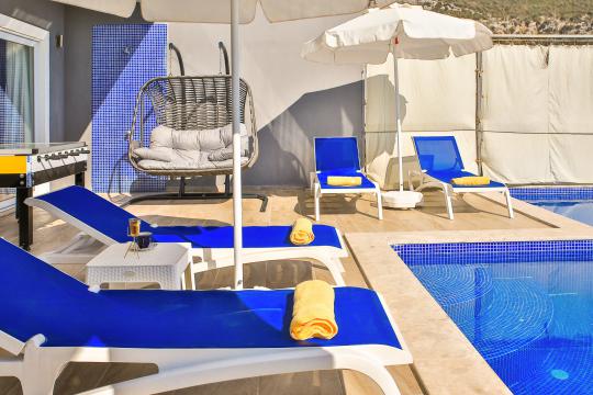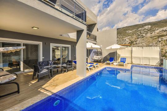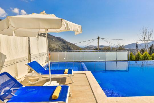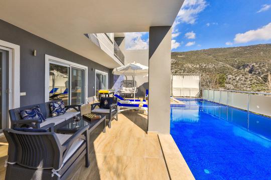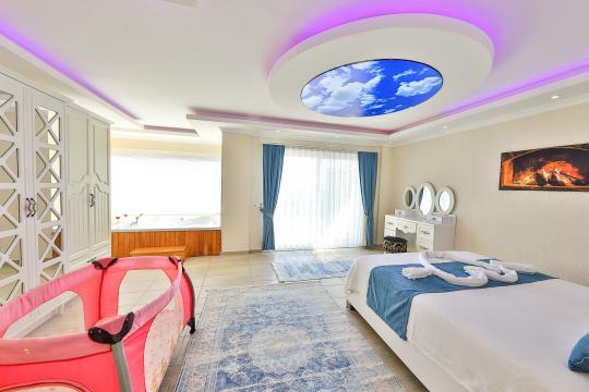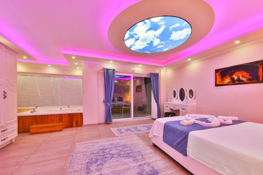 Kalkan İslamlar mevkiide konumlanmakta olan Villa Best, yeşilliklerle kaplı bol oksijenli doğaya sahip lüks kiralık villalarımız arasında yer almaktadır. Şık ve modern bir şekilde dekore edilen villamızda 2 adet yatak odası bulunmakta olup, 4 kişiye konaklama imkanı sağlamaktadır. Süit yatak odasının içerisinde jakuzi ve koşu bandı yer almaktadır.Ayrıca jakuzinin konumlandığı bölümde güzel bir doğa manzarası bulunmaktadır.Havuzu perdeleme sistemiyle korunaklı hale getirilmiş olup, muhafazakar kiralık villalarımızdandır. Muhafazakar ailelerimiz ve balayı çiftlerimiz gönül rahatlığı ile tercih edebilirler. Ayrıca özel yüzme havuzun yanında çocuk havuzu bulunmaktadır.