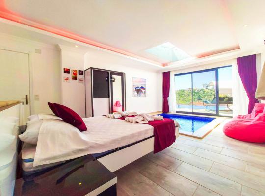 Villa Burcum; Kalkan Kördere mevkiide konumlanmış şık, modern tasarıma sahip bir villadır.Havuzu korunaklı ve tek yatak odalı villamız balayı çiftleri ve ikinci baharını yaşamak isteyen çiftlerimiz için idealdir.Ayrıca yatak odasında misafirlerimizin kış aylarında da havuz keyfini südürebilecekleri ısıtmalı ve jakuzi özelliği olan kapalı havuz bulunmaktadır.