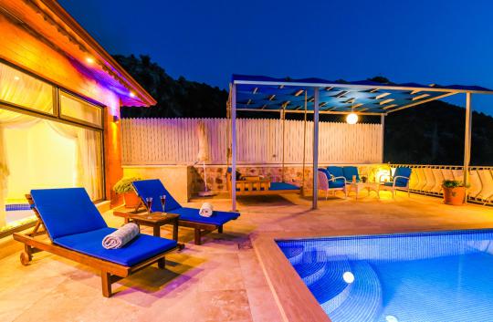 Villa Büşra; doğa ile iç içe, yeşillikler arasında, restuarantlar ve markete oldukça yakın, havuz çevresi korunaklı, dışarıdan görünmeyen yazlıklarımız arasında bulunan. villalarımızdan biridir.Tek yatak odalı 2 kişi konaklama kapasitesine sahiptir.Havuzu perde sistemi ile kapanan villamızda kapalı ısıtma havuzu bulunmaktadır.