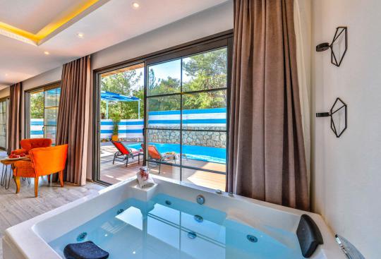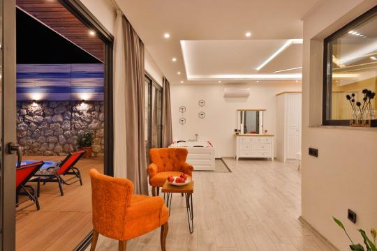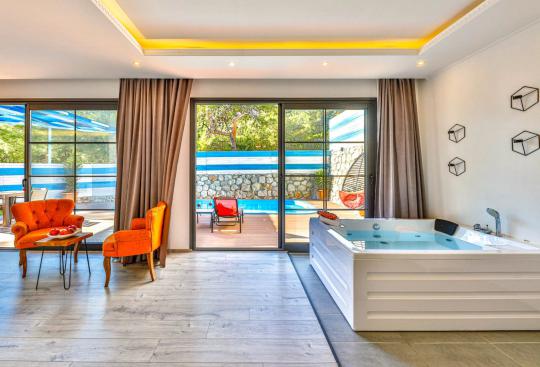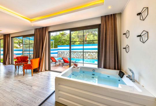 Villa Cazibe; Kalkan İslamlar Bölgesinde bulunan 1 yatak odalı 2 kişi konaklama kapasitesine sahiptir. Villa Cazibe doğa ile iç içe sakin bir konumda bulunmaktadır. Villamızın açık mutfak ve salonunda herşey en ince ayrıntıya kadar düşünülmüş olup villamızın yatak odasında günün tüm yorgunluğunu atabileceğiniz jakuzi bulunmaktadır. Villa Cazibe çekirdek aileler ve balayı çiftleri için oldukça ideal bir seçenektir.