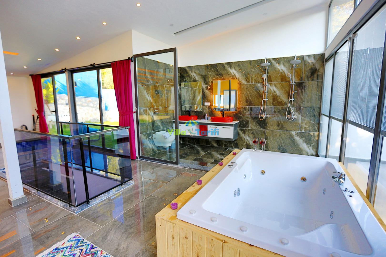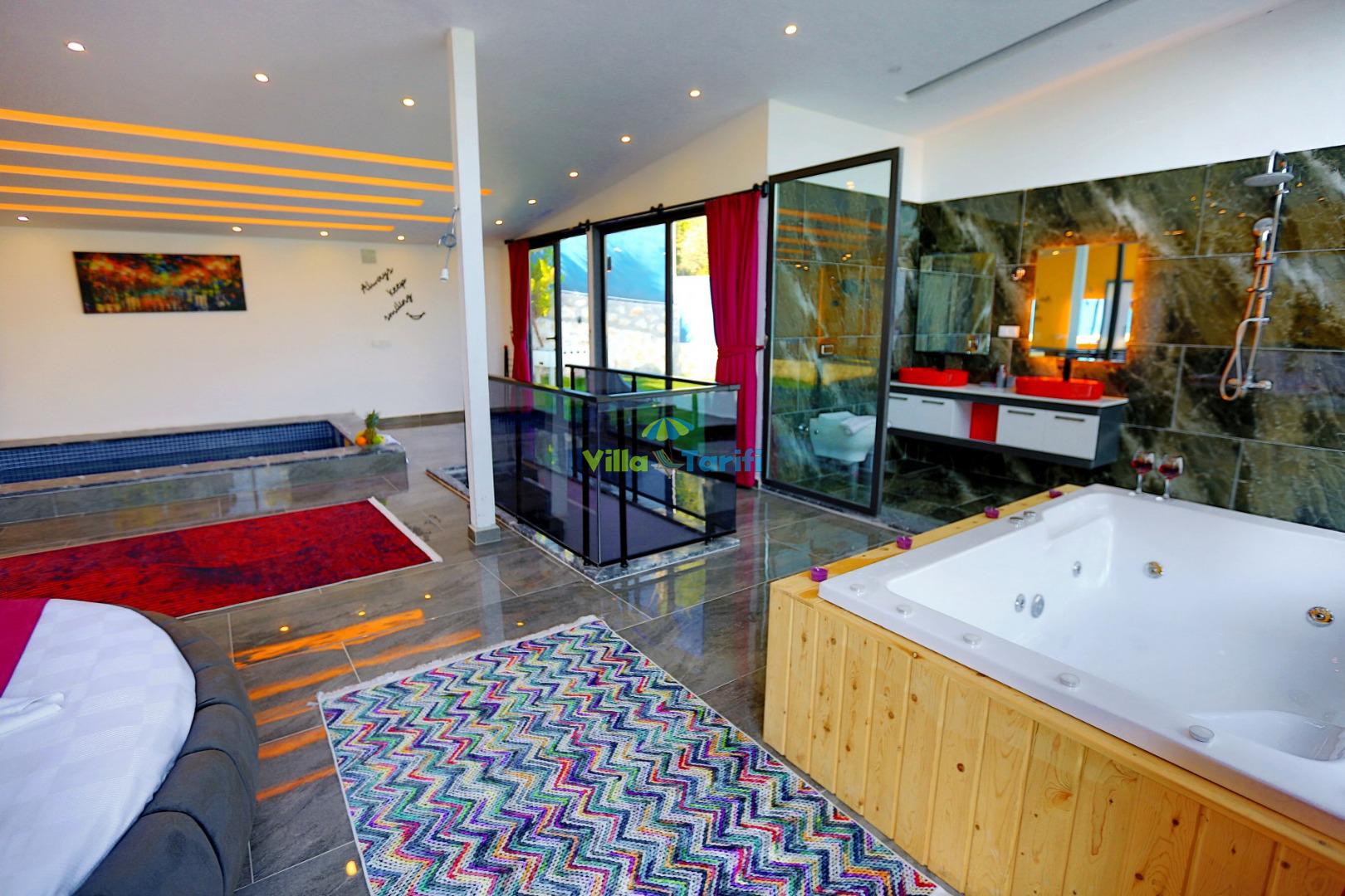 *Kış aylarında tatil yapmak isteyen misafirlerimiz için villamızın iç havuzunda ısıtma bulunmaktadır. Havuz ısıtması için günlük ekstra 1250 tl ücret talep edilmektedir.