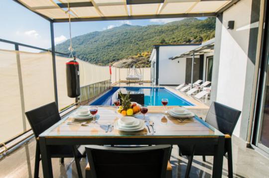 Villa Ceylan, Kalkan Sarıbelen mevkiinde konumlanan havuzu tam korunaklı kiralık villa seçeneklerimizdendir. Doğa ile iç içe bir konumda yer alan villamız, yemyeşil bir manzaraya karşı konumlanmaktadır.Villamızın içerisinde iki adet yatak odası ve iki adet banyo bulunmaktadır. Birinci yatak odası içerisinde çift kişilik yatak, klima, banyo ve jakuzi bulunmaktadır. İkinci yatak odasında ise iki adet tek kişilik yatak, klima ve banyo bulunmaktadır.