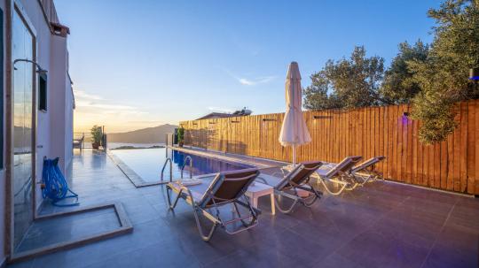 Villa Desde; Kalkan Kördere mevkiide konumlanan villamız 2 yatak odalı 4 kişi konaklama kapasitelidir. Suit yatak odasında jakuzi bulunmaktadır. Kaliteli ve konforlu eşyalar ile tasarlanan villamız muhteşem bir deniz manzarasına sahiptir. Keyifli bir tatil için langırt, masa tenisi ve spor odası bulunmaktadır. Muhteşem deniz manzarası eşliğinde keyifli bir tatil sizleri bekliyor.