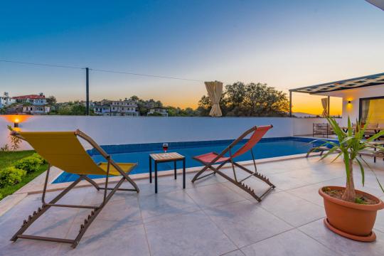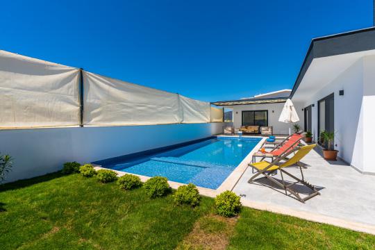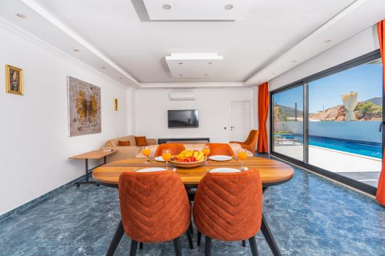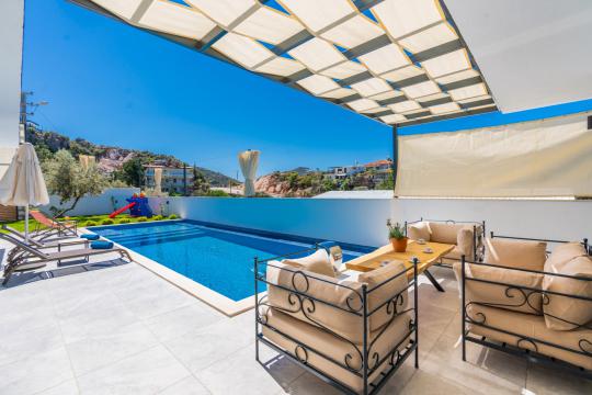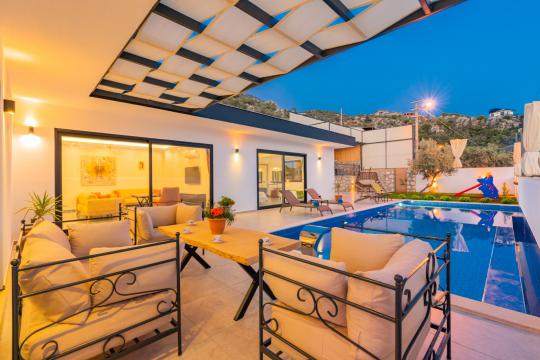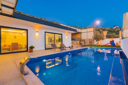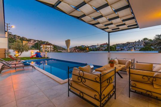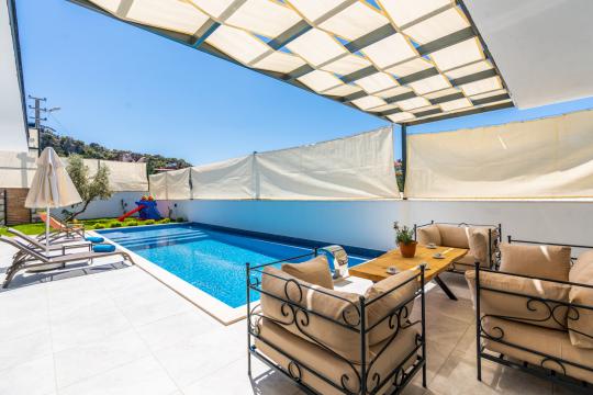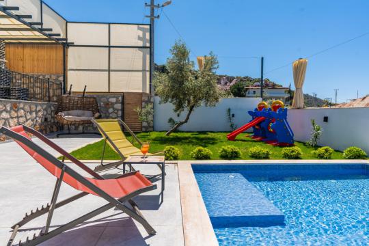 Villa Deştimen; Kalkan Ulugöl mevkiide bulunan villamız 2 yatak odalı 5 kişi konaklama kapasitesine sahiptir. Villa Deştimen modern ve şık tasarıma sahip açık mutfak alanı ile dikkat çekmektedir. Villamızın bir yatak odasında günün stresini atabileceğiniz jakuzi bulunmaktadır. Villa Deştimen korunaklı yapısı sayesinde muhafazakar aileler için oldukça ideal bir seçenektir.Villa Deştimen'in havuz alanında keyifli vakit geçirebileceğiniz oturma grubu, salıncak, çocuk oyun alanı ve barbekü bulunmaktadır.