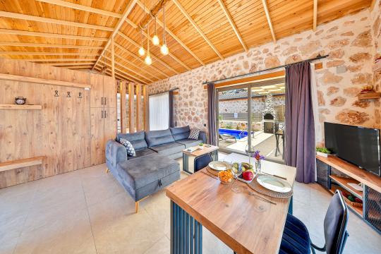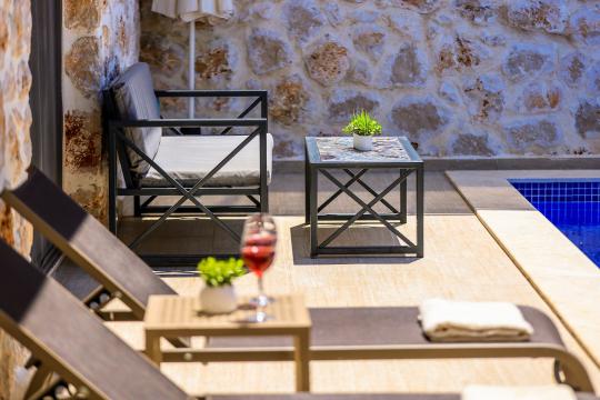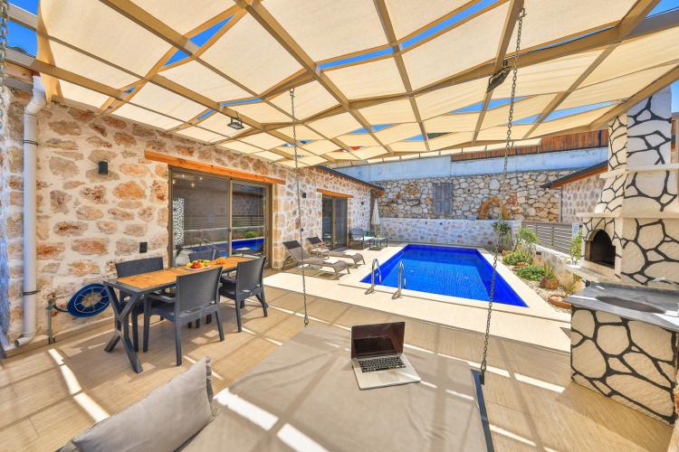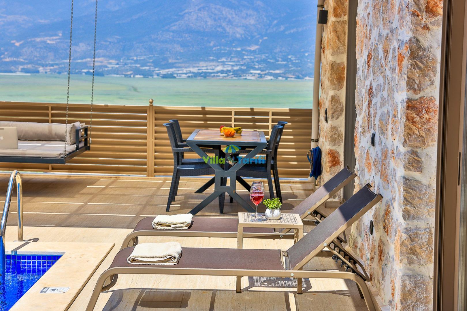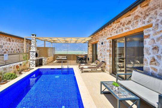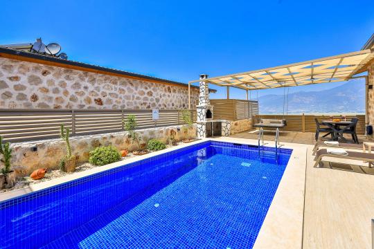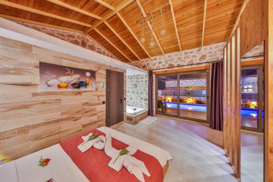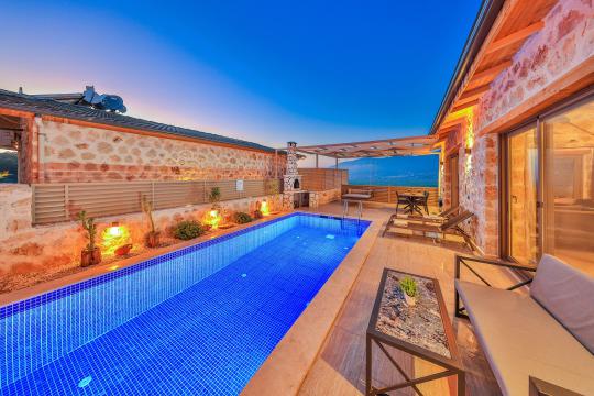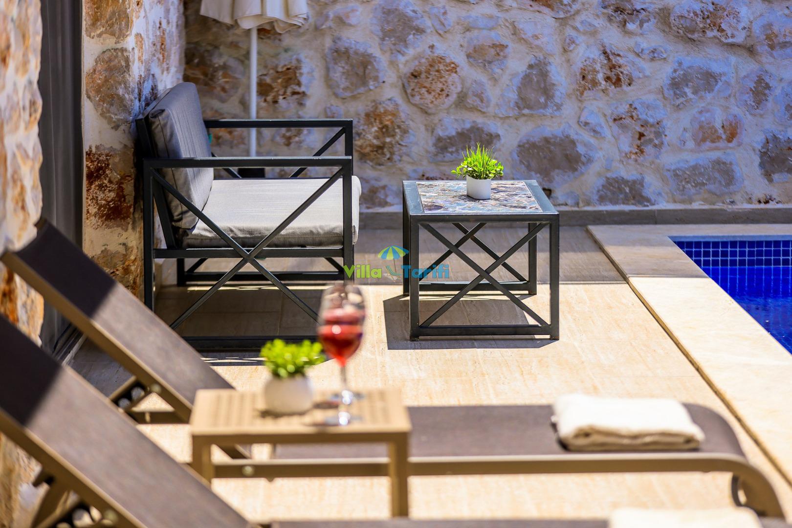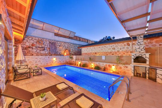 Villa Dio; Kalkan Yeşilköy Mevkiide konumlanan 1 yatak odalı 2 kişi konaklama kapasiteli taş mimariye sahip balayı villamız. Villamızda her detay sizin konfor ve rahatınız için düşünülmüş olup ferah havuz terasında oturma grubu, yemek masası ve salıncak bulunmaktadır. Villamızın yatak odasında günün yorgunluğunu atabileceğiniz bir jakuzi bulunmaktadır.
