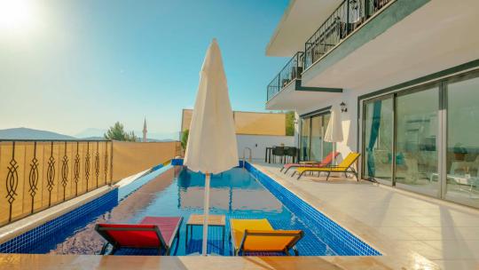 Villa Dream House, Kalkan merkezine yakın bir konum olan Kördere mevkiide konumlanmaktadır. Eşsiz deniz manzarasına sahip olan villamız hem çiftler hem de çekirdek aileler için idealdir. Modern ve konforlu bir şekilde dekore edilen yazlık kiralık villamızda 2 adet yatak odası bulunmakta olup, 4 kişiye konaklama imkanı sağlamaktadır. Yatak odasının 1 tanesinin içerisinde tüm yorgunluğunuzu atabileceğinizjakuziyer almaktadır. Ferah ve donanımlı villamızın havuz ve havuz terası korunaklı hale getirilmiştir. Muhafazakar ailelerimiz ve balayı çiftlerimiz gönül rahatlığı ile tercih edebilirler.