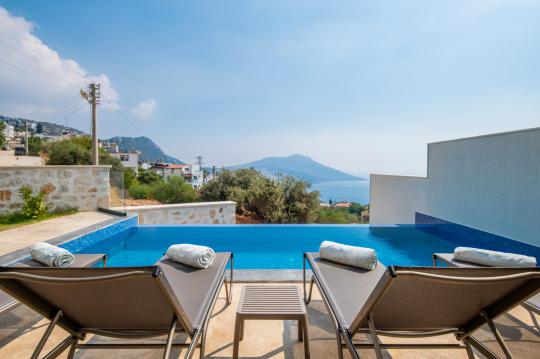 Villa Ece, Antalya Kalkan'ın eşsiz güzellikteki merkezlerinden birisi olan Kızıltaş bölgesinde yer almaktadır. 3 yatak odasına sahip olan bu villamız 6 kişiyi ağırlayabilmektedir. Odaları deniz manzarasına sahip olup, gökyüzünün maviliğini ve kızıllığını seyredebilirsiniz. Modern, şık ve konforlu eşyalar ile dekore edilmiştir. Yatak odalarının bir tanesinde jakuzi bulunmaktadır.
