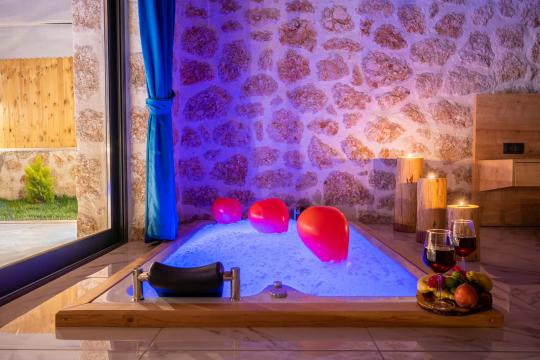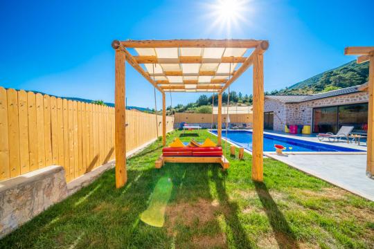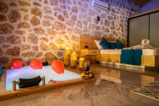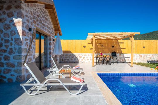 Villa Ediz Sarıbelen; Kalkan Sarıbelen mevkiide 2 yatak odalı 4 kişi konaklama kapasiteli doğa içinde jakuzili tatil villası. Villamız muhteşem doğa manzarasına sahip olmakta birlikte eşsiz bir havuz terası ve özel yüzme havuzuna sahip. Villamız muhteşem taş mimari ile tasarlanmış olup suit yatak odasında jakuzi bulunmaktadır. Villamızın havuz alanında keyifli vakit geçirebileceğiniz masa tenisi, salıncak, çocuk oyun alanı bulunmaktadır. Villamız korunaklı yapısı sayesinde muhafazakar aileler ve arkadaş grupları için oldukça ideal bir seçenektir.