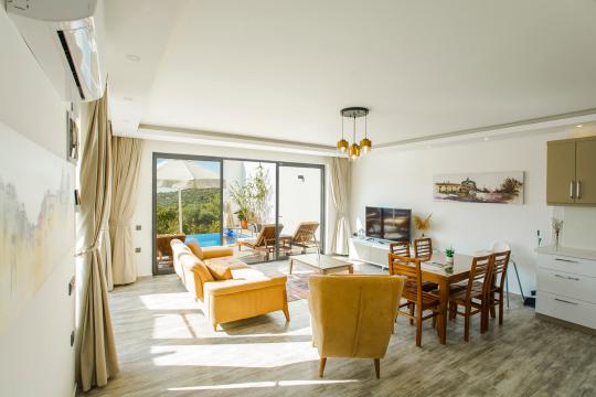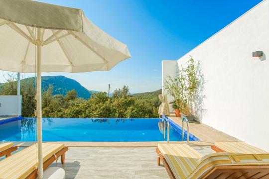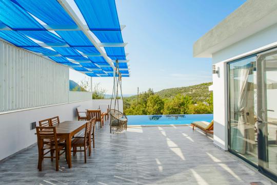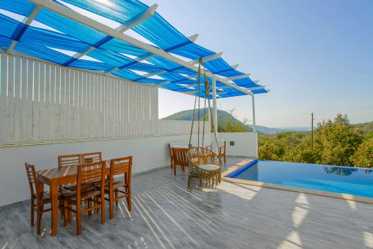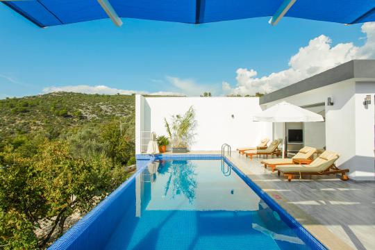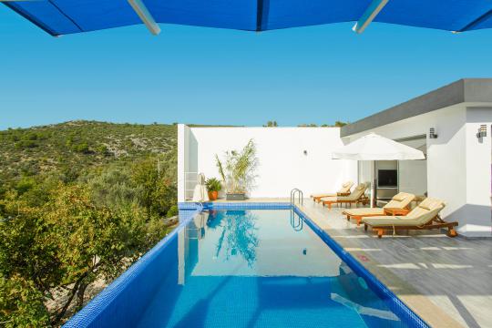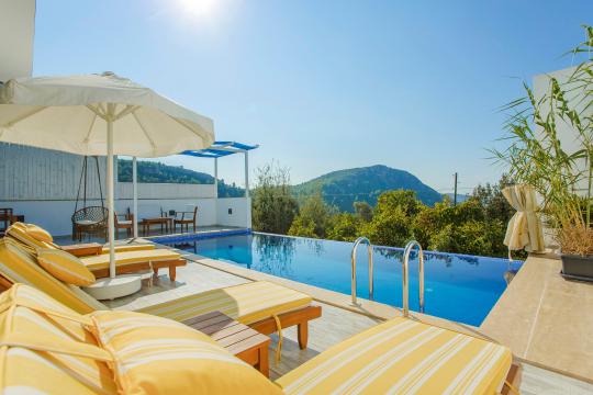 Villa Esin; Kalkan Üzümlü mevkiide konumlanan villamız 2 yatak odalı 4 kişi konaklama kapasitesine sahiptir. Doğa içinde bulunan villamızın havuz terası korunaklı olarak tasarlanmış olu muhafazakar aileler için ideal bir seçenektir.