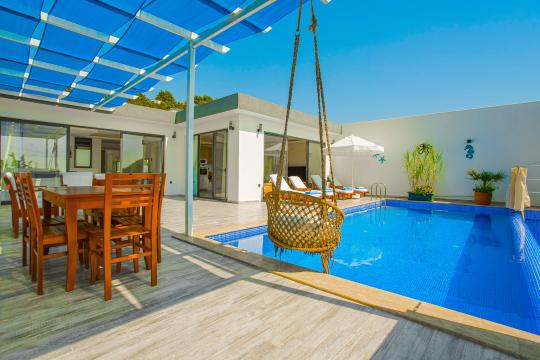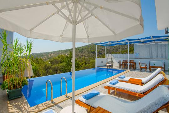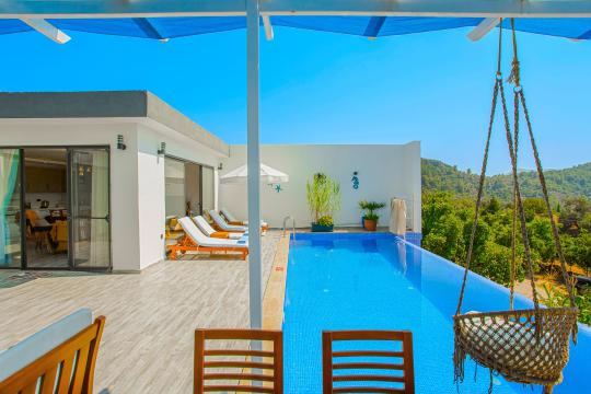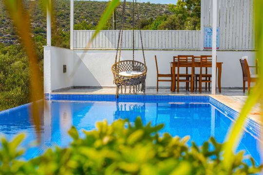 Villa Esra; Kalkan Üzümlü mevkiide konumlanmıştır. Villamız 2 yatakodalı 4 kişi konakalma kapasitesine sahiptir.Panaromik deniz ve doğa manzarısına sahip olan villamızın havuz terası korunaklı olarak tasarlanmıştır. Balayı çiftleri ve muhafazakar aileler için ideal bir seçenektir.