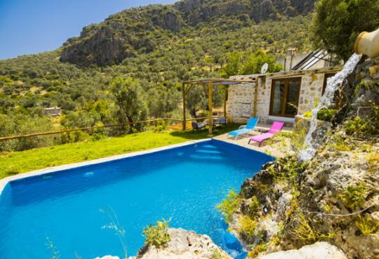 Villa Fairytale; Kalkan Ulugöl mevkiide tek yatak odalı 2 kişi konaklama kapasitesine sahip doğa içinde şirin bir balayı villasıdır. Modern ve otantik dizaynın bir arada tasarlandığı villamızda suit yatak odasında jakuzi bulunmaktadır. Şehirin gürültüsünden uzak, doğa ile iç içe keyifli bir tatil yapmak isteyen balayı çiftleri ve muhafazakar aileler için ideal bir seçenektir.