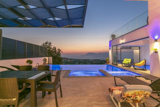 Villa Fantastik ; Kalkan Üzümlü mevkiide bulunan villamız 3 yatak odalı 6 kişi konaklama kapasitesine sahiptir. Villamızın bir yatak odasında günün yorgunluğunu atabileceğiniz jakuzi bulunmaktadır. Villamız oldukça lüks ve modern tasarlanmıştır. Villamızda kış aylarında keyifli bir tatil yapabileceğiniz ısıtmalı iç havuz, hamam ve sauna bulunmaktadır, bu olanak sizlere 12 ay tatil fırsatı sunmaktadır. Villamız oldukça muhafazakar olarak tasarlanmış olup muhafazakar aileler ve arkadaş grupları için oldukça ideal bir seçenektir.