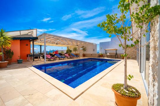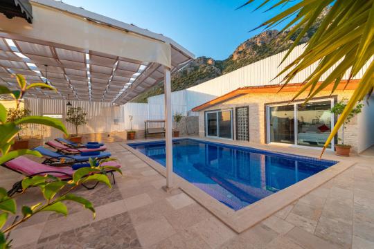 Villa Felix, Kalkan Kördere mevkiinde, Kalkan merkeze 5 km mesafede konumlanmıştır.Villamız panoramik deniz manzaralı olup 3 yatak odalı olup 6 kişilik kapasiteye sahiptir. Korunaklı geniş havuz terasına sahip olan villamız muhafazakar aileler için idealdir. Villamızda günün yorgunluğunu atabileceğiniz sıcak havuz ve sauna bulunmaktadır. Villamızda keyifli bir tatil için detaylar düşünülerek tenis masası ve çift salıncak bulunmaktadır. İki katlı bir binanın üst katında inşa edilen villamıza 35 basamaklı merdivenden villamıza çıkılmaktadır.