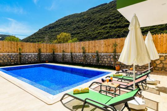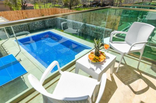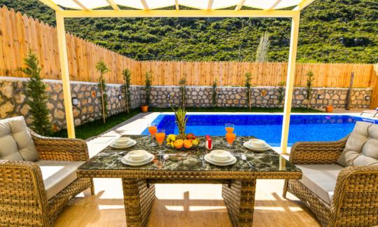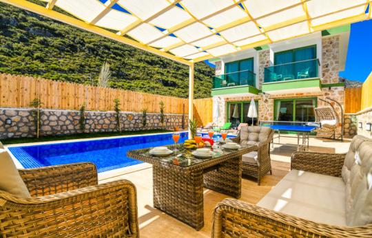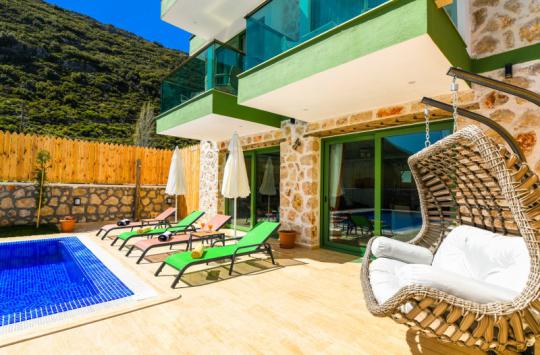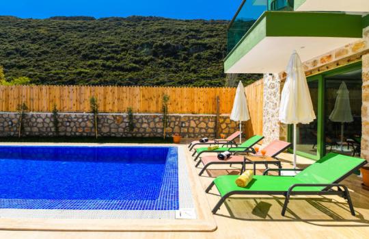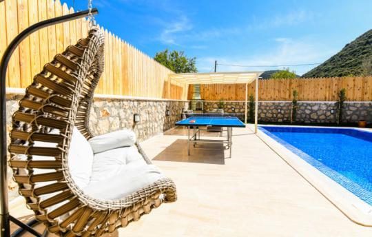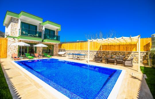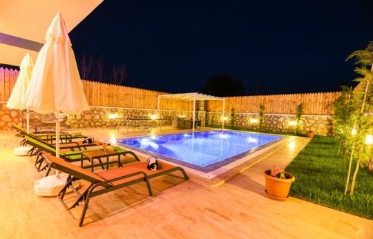 Villa Gamze; tertemiz havası ile doğa içinde konumlanan Kalkan Bezirgan mevkiide bulunmaktadır. Villamız 2 yatak odalı 4 kişi konaklama kapasitesine sahiptir. Taş yapısı ile dikkat çeken villamız konforlu eşyaları ile şık ve modern dizayna sahiptir. Suit yatak odasında bulunan jakuzisi ile tatilinizi daha keyifli hale getirecek sauna odası ve masa tenisi bulunmaktadır. Villamızın havuz terası korunaklı olarak tasarlanmıştır. Şehrin gürültüsünden uzak doğa içinde keyiflı bir tatil fırsatı sunmaktadır.