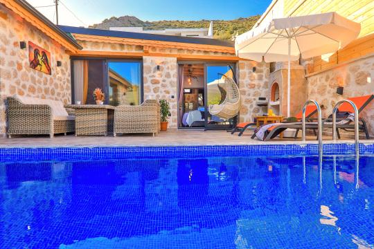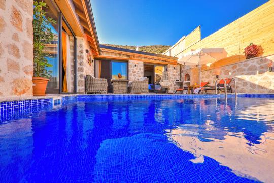 Villa Gökkaya; Kalkan Yeşilköy mevkiide bulunan taş mimarisi ide dikkat çeken villamız 2 yatak odalı 4 kişi konaklama kapasitesine sahiptir. Suit yatak odasında jakuzi bulunan villamızın havuz alanı korunaklı olarak tasarlanmıştır. Muhafazakar aileler ve balayı çiftleri için ideal olan villamız şehrin gürültüsünden uzak keyifli bir tatil fırsatı sunmaktadır.