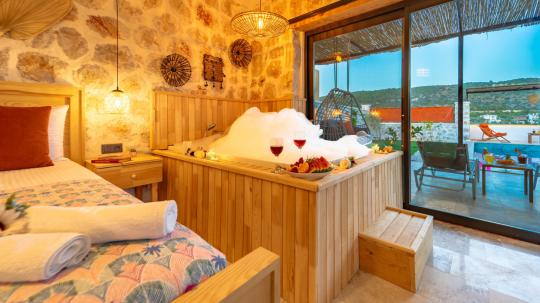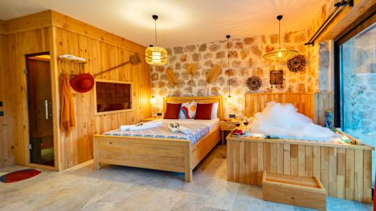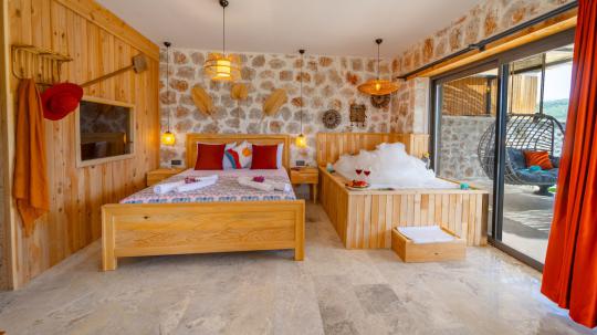 Villa Hanedan Luxury; Kalkan Patara Bölgesinde bulunan villamız 1 yatak odalı 2 kişi konaklamaka kapasitesine sahiptir. Villamız oldukça şık bir tasarıma sahiptir. Villamızda keyifli vakitler geçirebileceğiniz türk hamamı, sauna ve yatak odasında tatilinize renk katıcak jakuzi gibi ekstralar bulunmaktadır. Villamızın korunaklı havuz alanında bahçe salıncak, oturma grubu,şezlong ve barbekü bulunmaktadır. Villa Hanedan Luxury balayı çiftleri ve çekirdek aileler için oldukça ideal bir seçenektir.