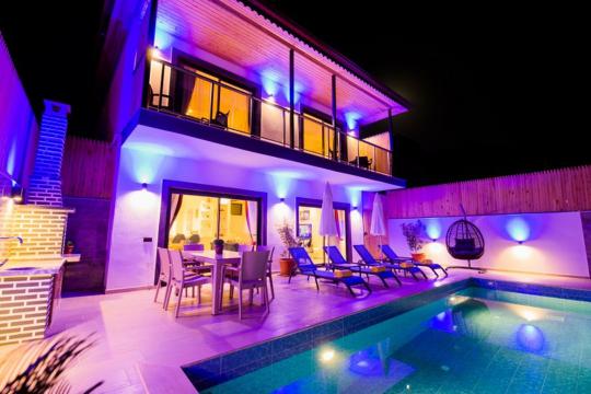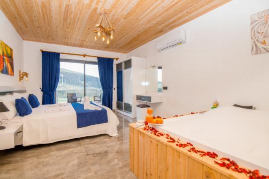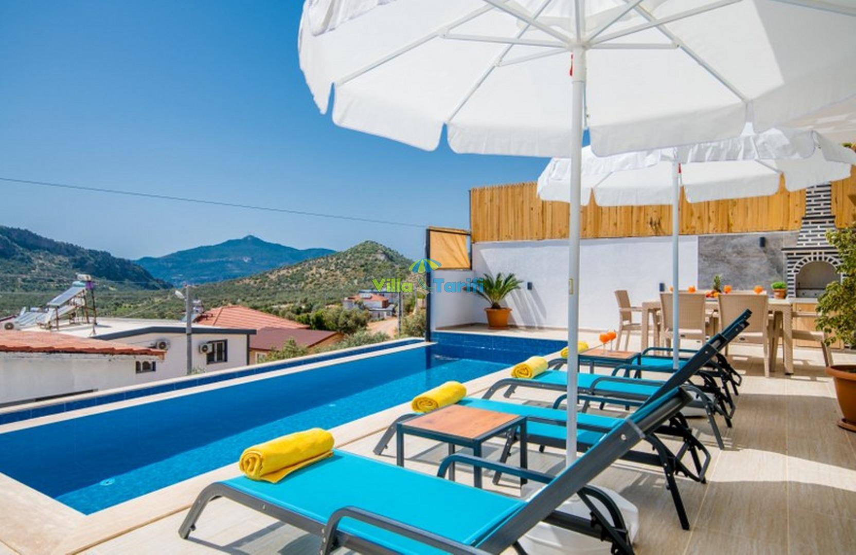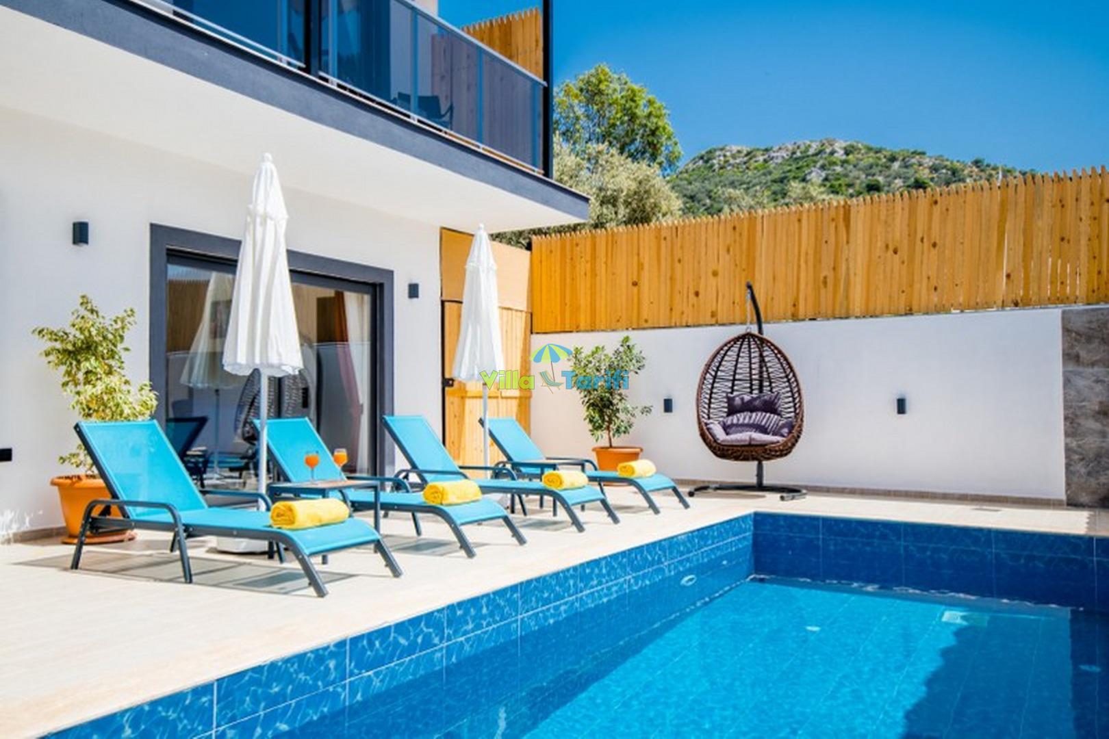 Villa Karadağ; Kalkan Ulugöl mevkiide konumlanan villamız 2 yatak odalı 4 kişi konakalama kapasitesine göre dizayn edilmiştir. Özel yüzme havuzu ve havuz terası perdeleme sistemi ile korunaklı olarak tasarlanmıştır. Villamızda bulunan jakuzi ile balayı çiftleri ve muhafazakar aileler için keyifli bir tatil fırsatı sunmaktadır.Kalkan merkeze 5 km mesafede konumlanmıştır.