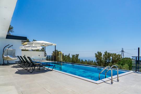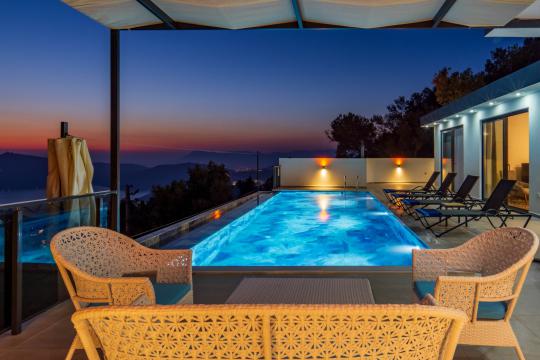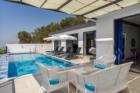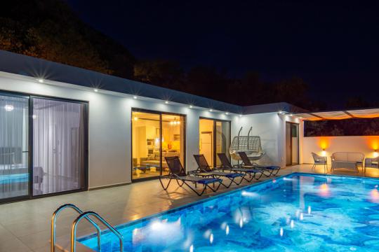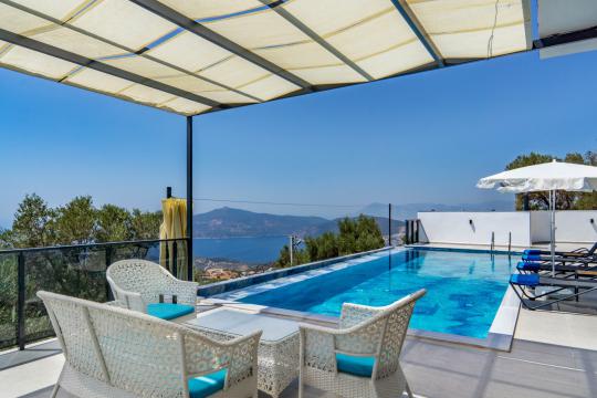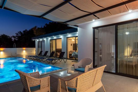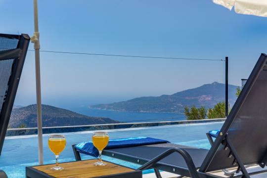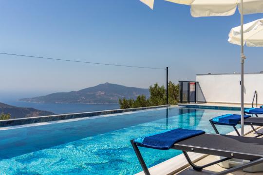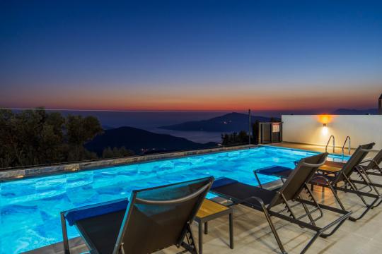 Villa Karbelen, Kalkan kördere bölgesinde yer alan panoramik deniz manzaralı 4 kişi kapasiteli, jakuzili ve muhafazakar balayı villalarımız arasında yer almaktadır. Villamız 4 kişilik kapasitesi ile genellikle balayı çiftleri ve muhafazakar çiftler tarafından tercih edilmektedir.. Villamızın muhafazakar özelliklere sahip olması,havuz, teras ve bahçe alanının dışardan görünmesini engellemektedir. Bu sayede tatiliniz esnasında villanın havuz ve bahçe alanı dışardan görünmemektedir.Villamızın suit yatak odasında günün bütün yorgunluğunu atabileceğiniz bir jakuzi bulunmaktadır buda tatilinizi daha keyifli hale getirmektedir.