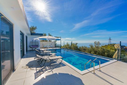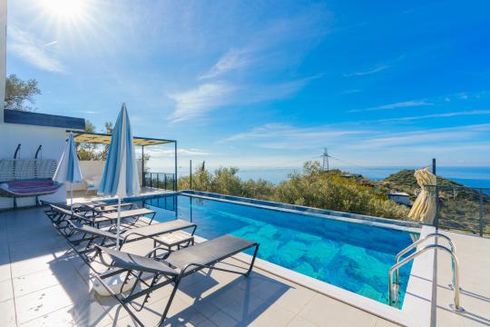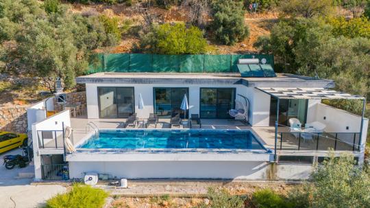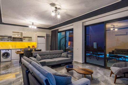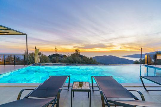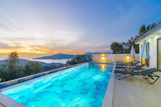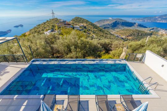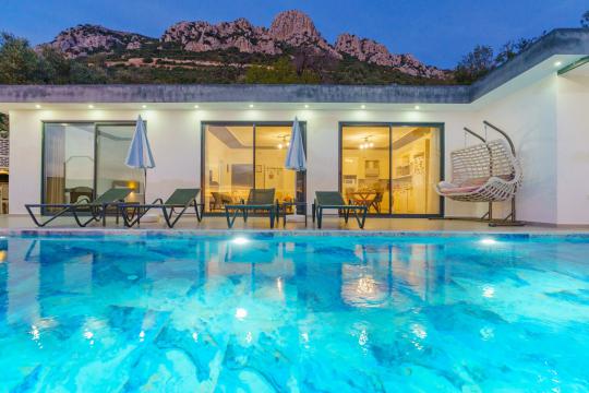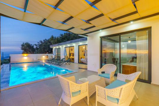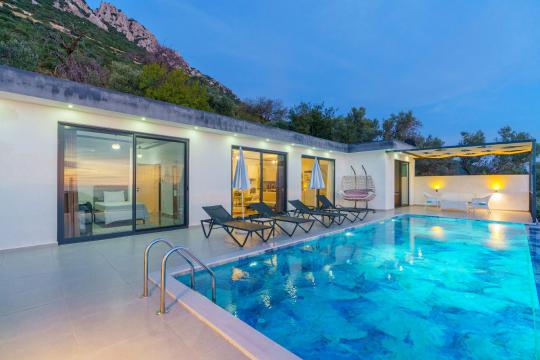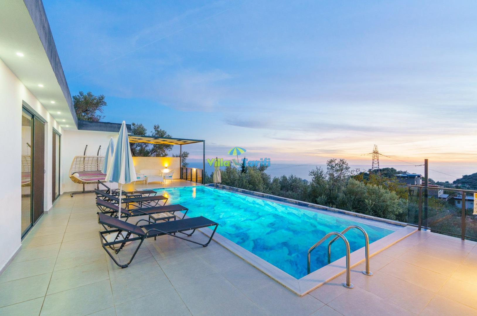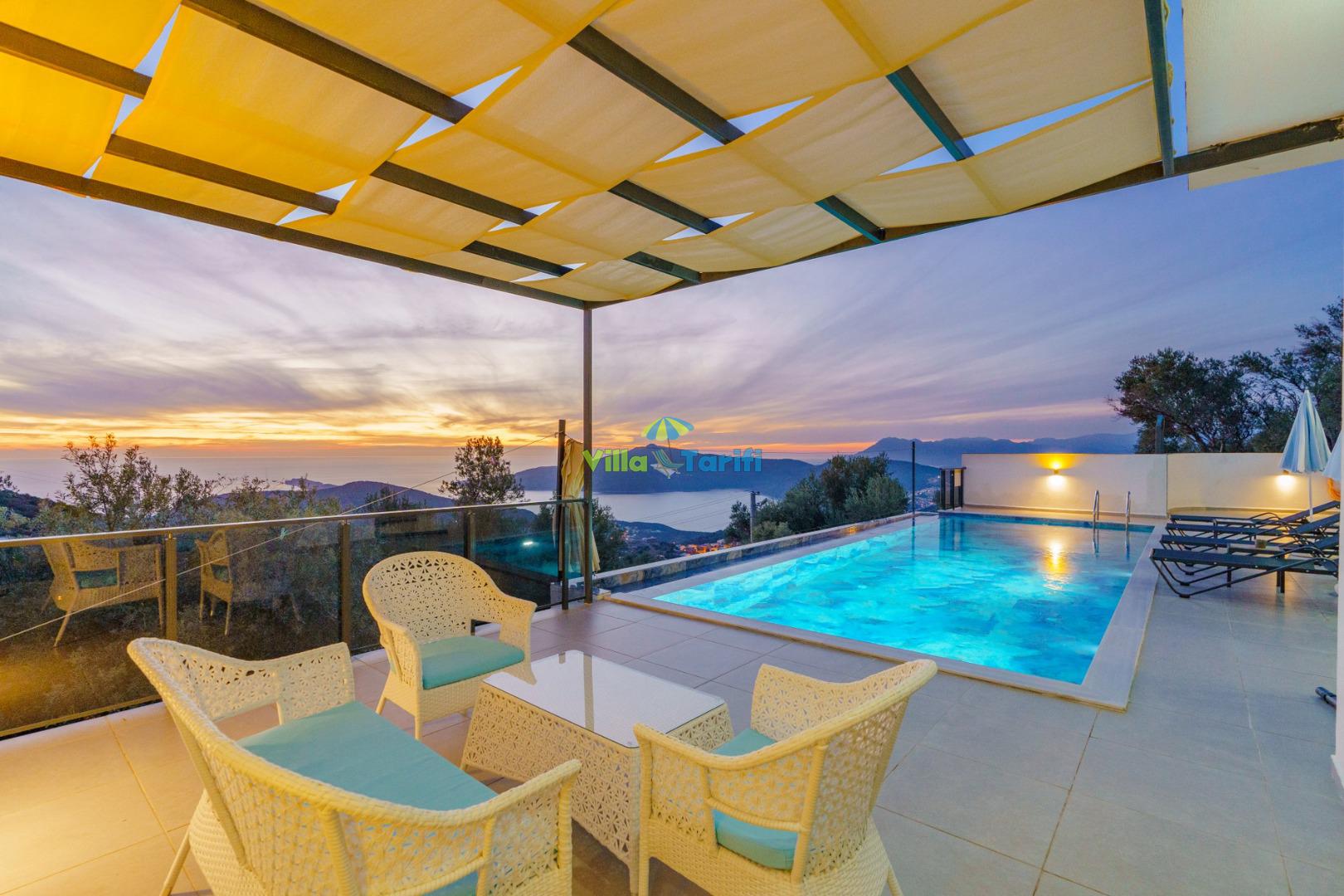 Villa Karbelen, Kalkan kördere bölgesinde yer alan panoramik deniz manzaralı 4 kişi kapasiteli, jakuzili ve muhafazakar balayı villalarımız arasında yer almaktadır. Villamız 4 kişilik kapasitesi ile genellikle balayı çiftleri ve muhafazakar çiftler tarafından tercih edilmektedir.. Villamızın muhafazakar özelliklere sahip olması,havuz, teras ve bahçe alanının dışardan görünmesini engellemektedir. Bu sayede tatiliniz esnasında villanın havuz ve bahçe alanı dışardan görünmemektedir.Villamızın suit yatak odasında günün bütün yorgunluğunu atabileceğiniz bir jakuzi bulunmaktadır buda tatilinizi daha keyifli hale getirmektedir.