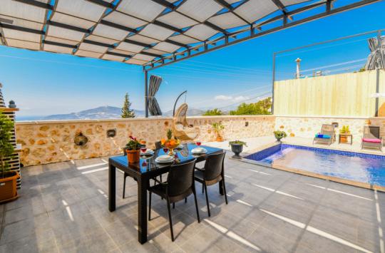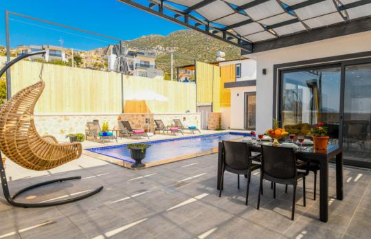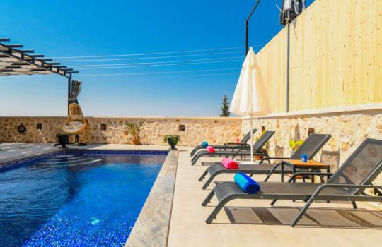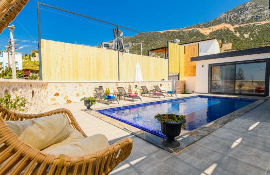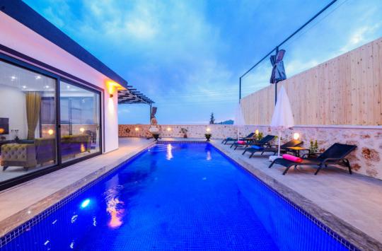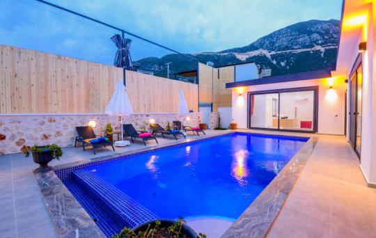 Villa Karya; Kalkan Ordu mevkiide konumlanmıştır. Villamız 2 yatak odalı 4 kişi konaklama kapasitesine göre dizayn edilmiştir. Suit yatak odasında jakuzi bulunan villamızın havuz alanı perdeleme sistemi ile korunaklı olarak tasarlanmıştır. Muhafazakar aileler ve balayı çiftleri için ideal olan villamız doğa içinde şehrin gürültüsünden uzak keyifli bir tatil fırsatı sunmaktadır.