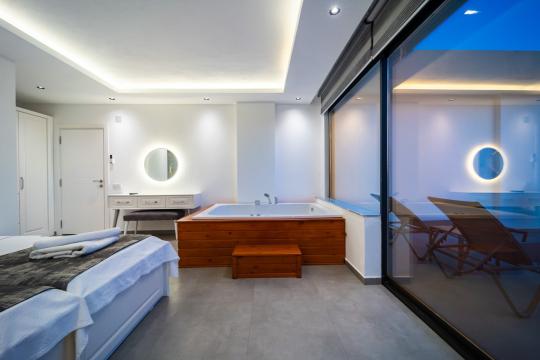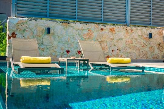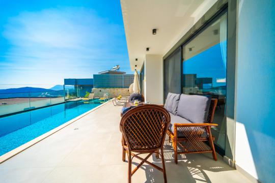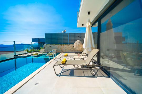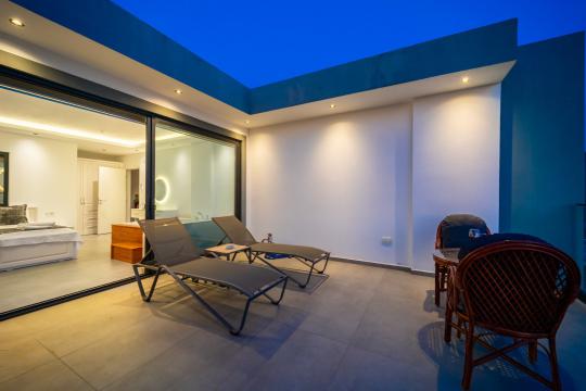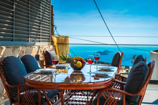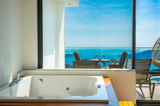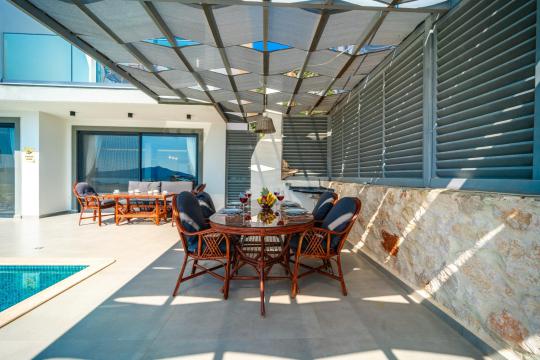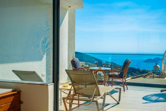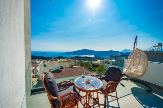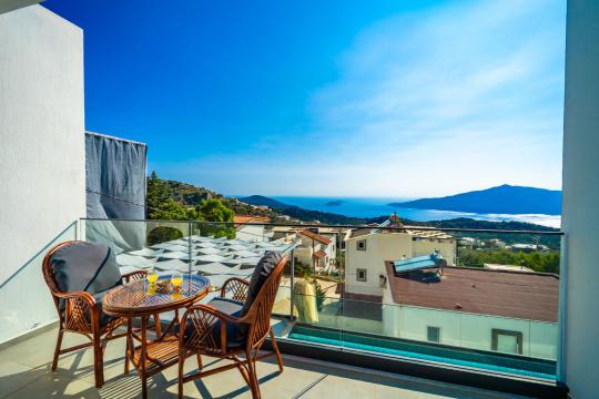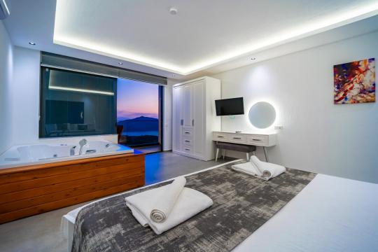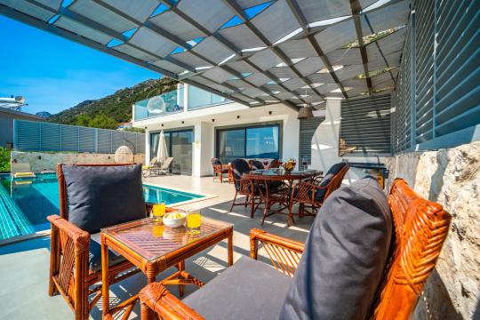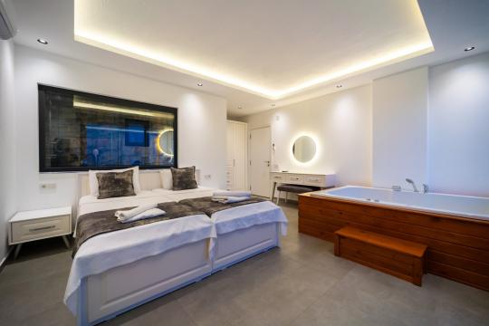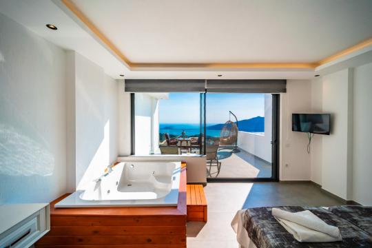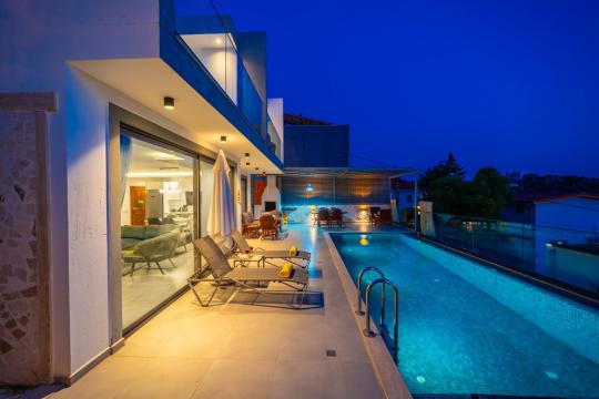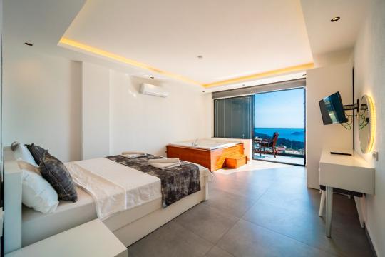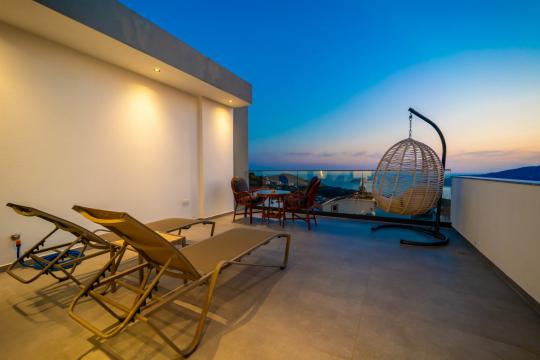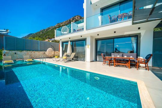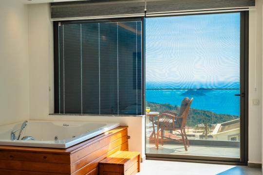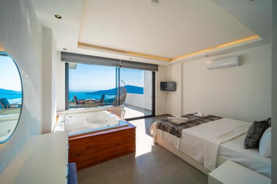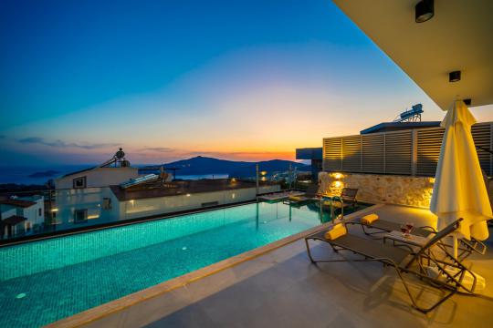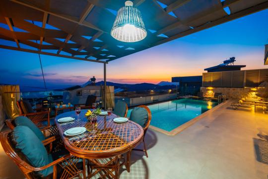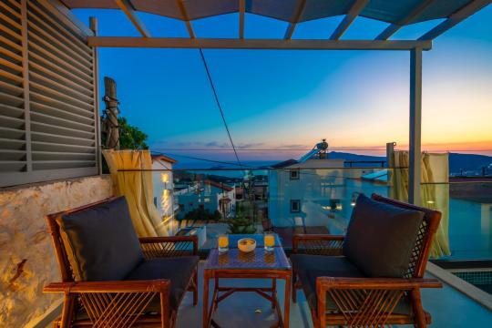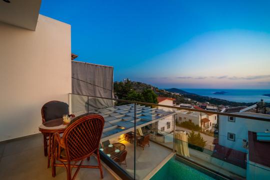 Villa Kaya Royal, Kalkan Kördere Bölgesi' nde yer alan doğa içerisinde ve deniz manzaralı 2 yatak odalı 4 kişi konaklama kapasiteli kiralık villa. Villamızın içerisi modern ve konforlu bir şekilde dizayn edilmiş olup sizler için hazır edilmiştir. Villa Kaya Royal ın havuz terası korunaklı olup aynı zamanda binamızda bilardo masası ve aileniz ile günün bütün yorgunluğunu atabileceğiniz sauna mevcut olup 4 kişilik aileler ve balayı çiftleri için ideal bir seçenektir.Ayrıca villamızın iki yatak odasında da jakuzi bulunmaktadır.