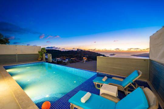 Villa Kayacan, Kalkan Kördere mevkiinde bulunan 2 yatak odalı 4 kişilik konaklama kapasiteli deniz manzaralı kapalı yüzme havuzlu kiralık yazlık tatil villasıdır.Villamız oldukça modern ve konforlu bir şekilde dizayn edilmiş olup 2 yataklı odasında jakuzi mevcut olup 1. yatak odasında aynı zamanda kapalı yüzme havuzu bulunmaktadır. Villa Kayacan'ın havuz terası korunaklı olup barberkü alanı, oturma alanı,salıncağı ve eşsiz deniz manzarası ile güzel anılar biriktirebileceğiniz muazzam bir tatil fırsatı sunmaktadır.