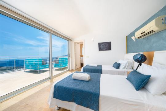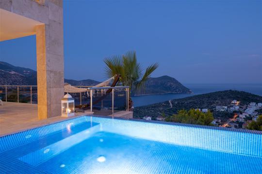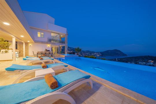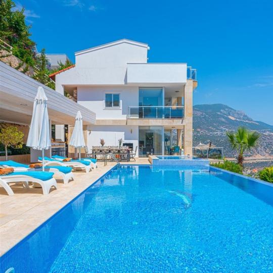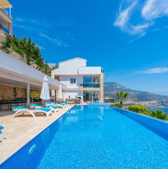 Villa Kayra, Eşsiz güzellilteki deniz ve doğa manzarasına ev sahipliği yapan Kalkan Kalamar Koyu'nda yer alan villamız 6 yatak odalı ve 12 kişilik konaklama kapasitesine sahiptir. Kalabalık aileler ve arkadaş gruplarının rahatlıkla konaklayabileceği villamız plaj, market, restorant ve eğlence mekanlarına yürüme mesafesindedir. Araçsız bir yaz tatili planlayan misafirlerimiz için Villa Kayra oldukça idealdir. Villamızın manzaralı bahçesinde unutulmaz ve eğlenceli vakitler geçirebileceğiniz havuz, şezlong, oturma köşesi, gün batımı eşliğinde akşam yemeklerinizi yiyebileceğiniz yemek masası yer almaktadır. Denizin maviliği, doğanın yeşilliği ve gökyüzünün kızıllığı ile villadan çıkmak istemeyeceksiniz. Modern ve zevkle döşenmiş villamızın yere dek uzanan pencreleri sayesinde tüm odalarından manzarayı kesintisiz seyredebilirsiniz. Villamızın şık dekore edilmiş yatak odalarından birinde jakuzi bulunmaktadır.