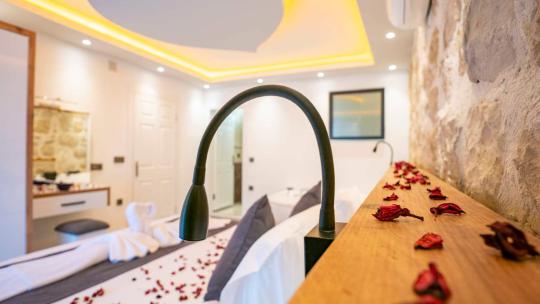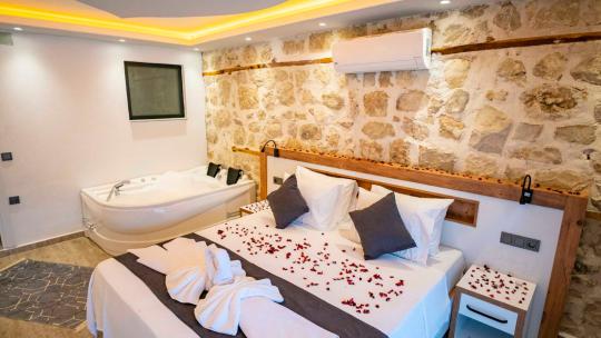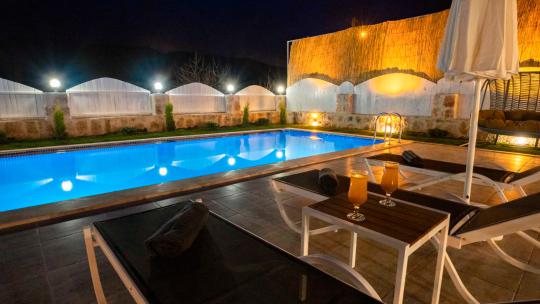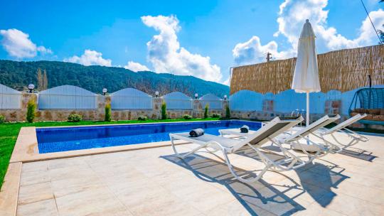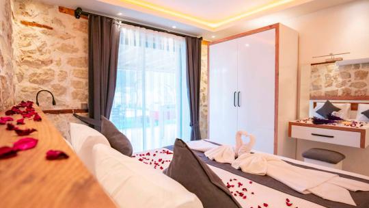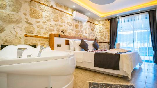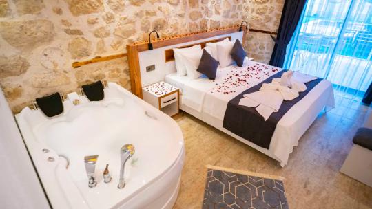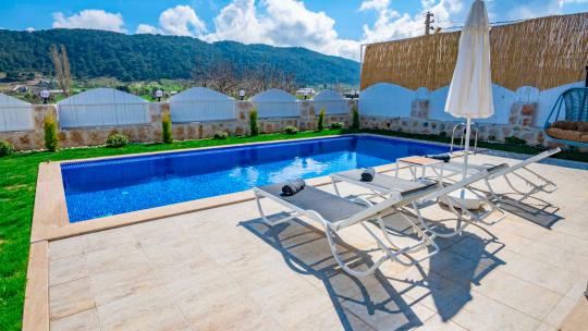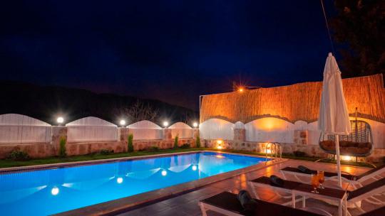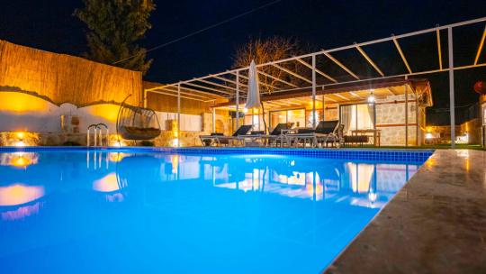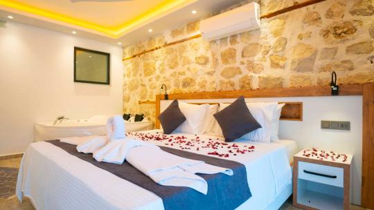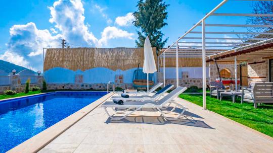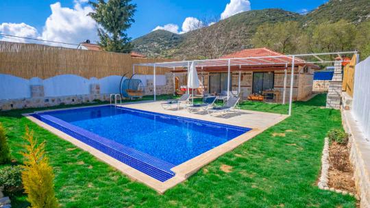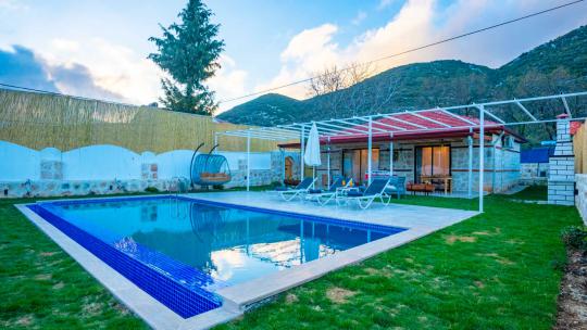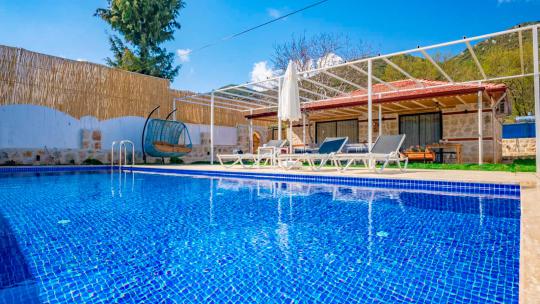 Villa Küçükkaya; Kalkan Sarıbelen mevkiide konumlanan taş mimarisi ve modern dizaynı ile dikkat çeken kiralık balayı villalarımızdandır. Villamız 1 yatak odalı 2 kişi konaklama kapasitesine sahiptir. Balayı çiftleri özenle tasarlanan villamızda ek yatak mevcut olup 3-4 kişilik çekirdek ailelerimiz için de ideal bir seçenektir. Havuz alanı korunaklı olarak tasarlanan villamız muhafazakar aileler için gözlerden uzak bir tatil fırsatı sunamaktadır.