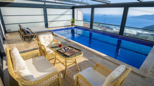 Villa La Kaya; Kalkan Körderede bulunan villamız 3 yatak odalı 6 kişi konaklama kapasitesine sahip, özel yüzme havuzlu ve deniz manzaralı tatil villasıdır. Villamızın bir yatak odasında günün yorgunluğunu atabileceğiniz jakuzi bulunmaktadır. Villamızda ek olarak teras katında 4 kişilik büyük bir jakuzi bulunmaktadır. Villamızın özel yüzme havuzu istenildiği takdirde kapatılarak ısıtmalı olarakta kullanılabilir. Villamızda keyifli vakit geçirebiliceğiniz sauna bulunmaktadır. Villa La Kaya muhafazakar aileler ve arkadaş grupları için oldukça ideal bir seçenektir.