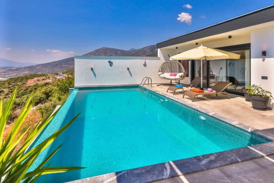 Villa Lavantin Exclusive, Kalkan Üzümlü Bölgesi'nde yer alan şehir gürültüsünden uzak, sakin konumda yer alan villamız 1 yatak odalı ve 2 kişilik konaklama kapasitesine sahiptir. Muhteşem doğa manzarasına sahip villamızın bahçesi korunaklıdır. Bu sebeple Villa Lavantin Exclusive muhafazakar çiftler ve balayı çiftlerimiz için oldukça idealdir. Villamızın havuz terasın da keyifli vakit geçirebileceğinzi havuz, salıncak ile manzarayı seyredebileceğiniz oturma köşesi ve gün batımı eşliğinde yemek yiyebileceğiniz yemek masası yer almaktadır. Konforunuz için dizayn edilmiş villamızın yatak odasında jakuzi yer almaktadır. Temiz havaya sahip villamızda keyifli ve huzurlu bir tatil için tüm hizmetler siz misafirlerimize sunulmuştur.